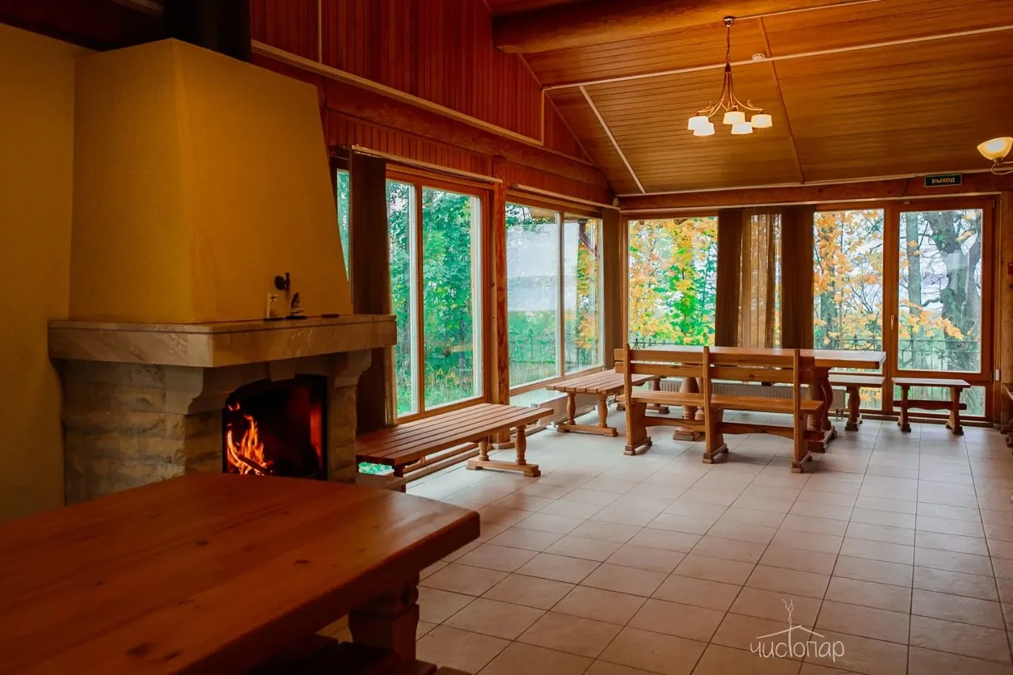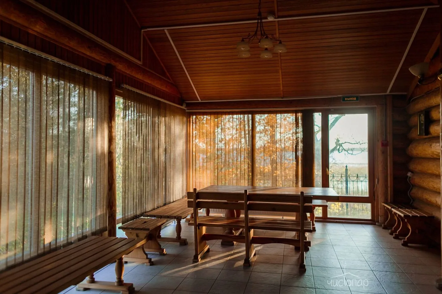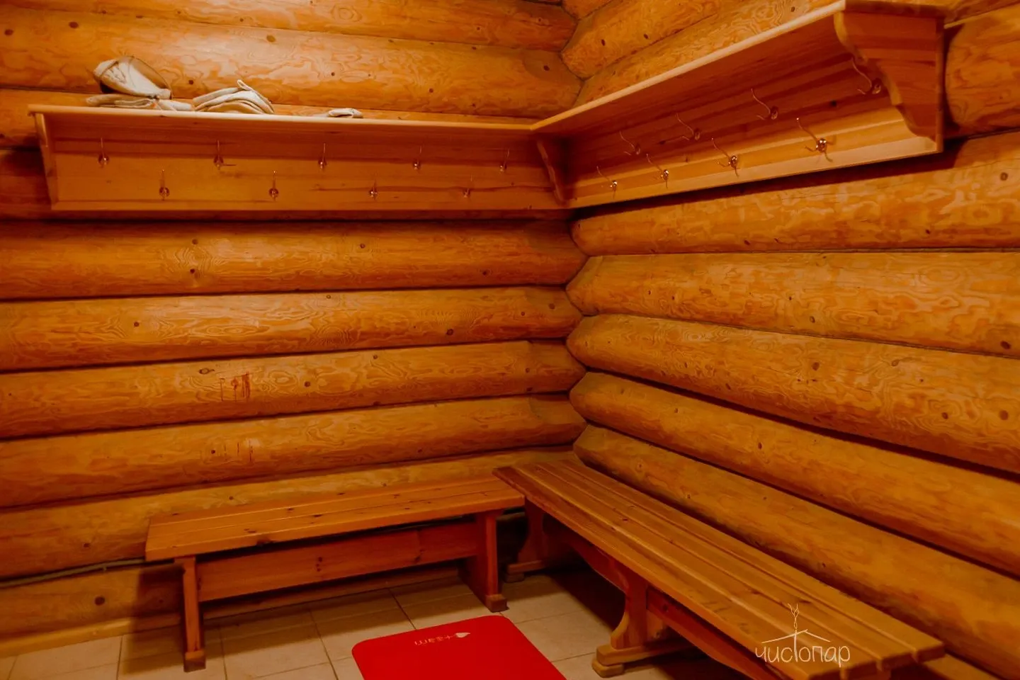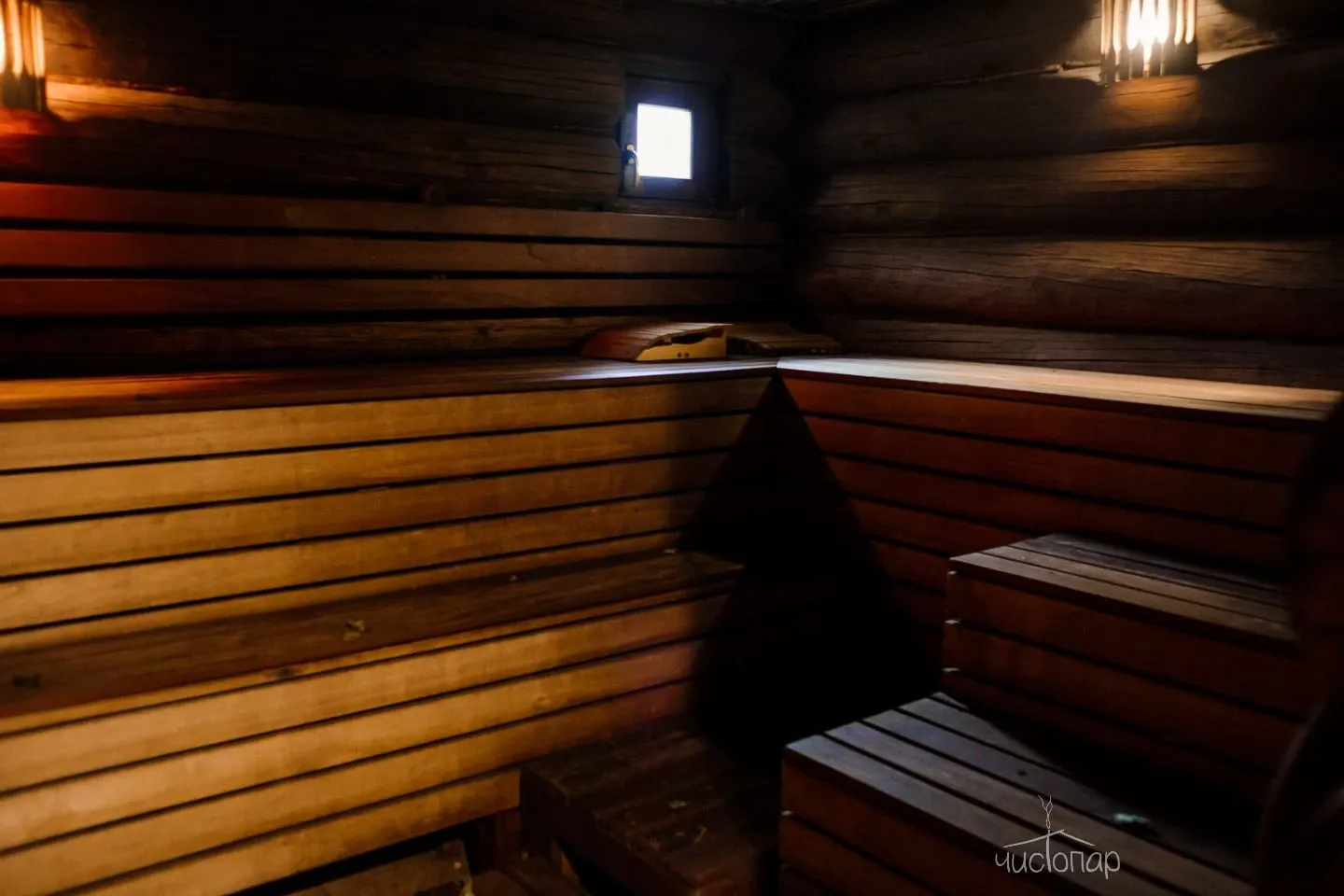 Здесь можно посетить настоящую Русскую баню, отдохнуть в каминном зале, искупаться в ледяной купели или озере.