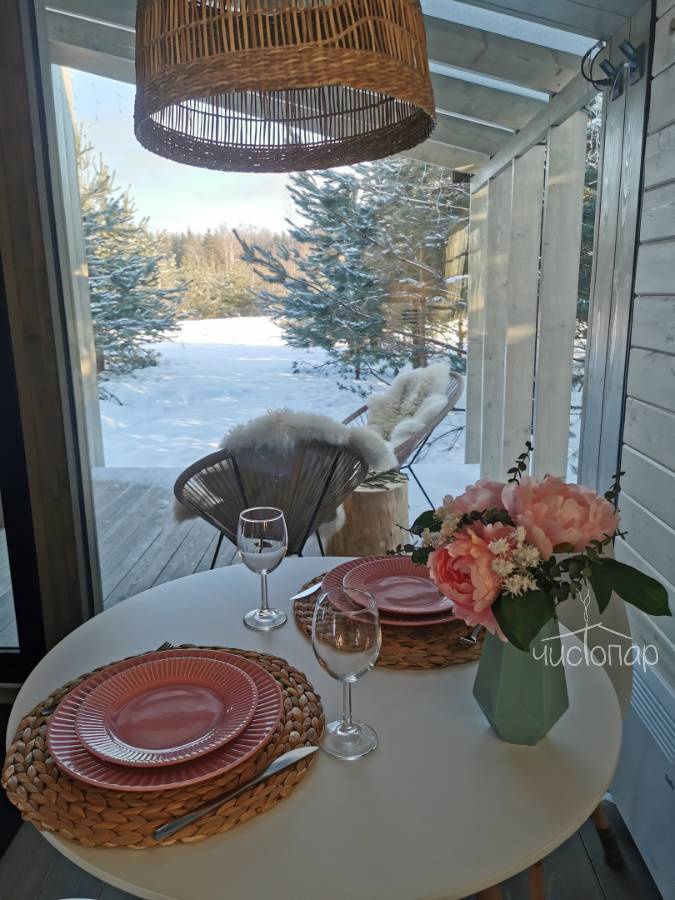 Зимой гостей ждут лыжные прогулки, катание на санках и уютные вечера с просмотром семейных фильмов. В доме есть множество настольных игр, виниловый проигрыватель с пластинками и мини-библиотека.