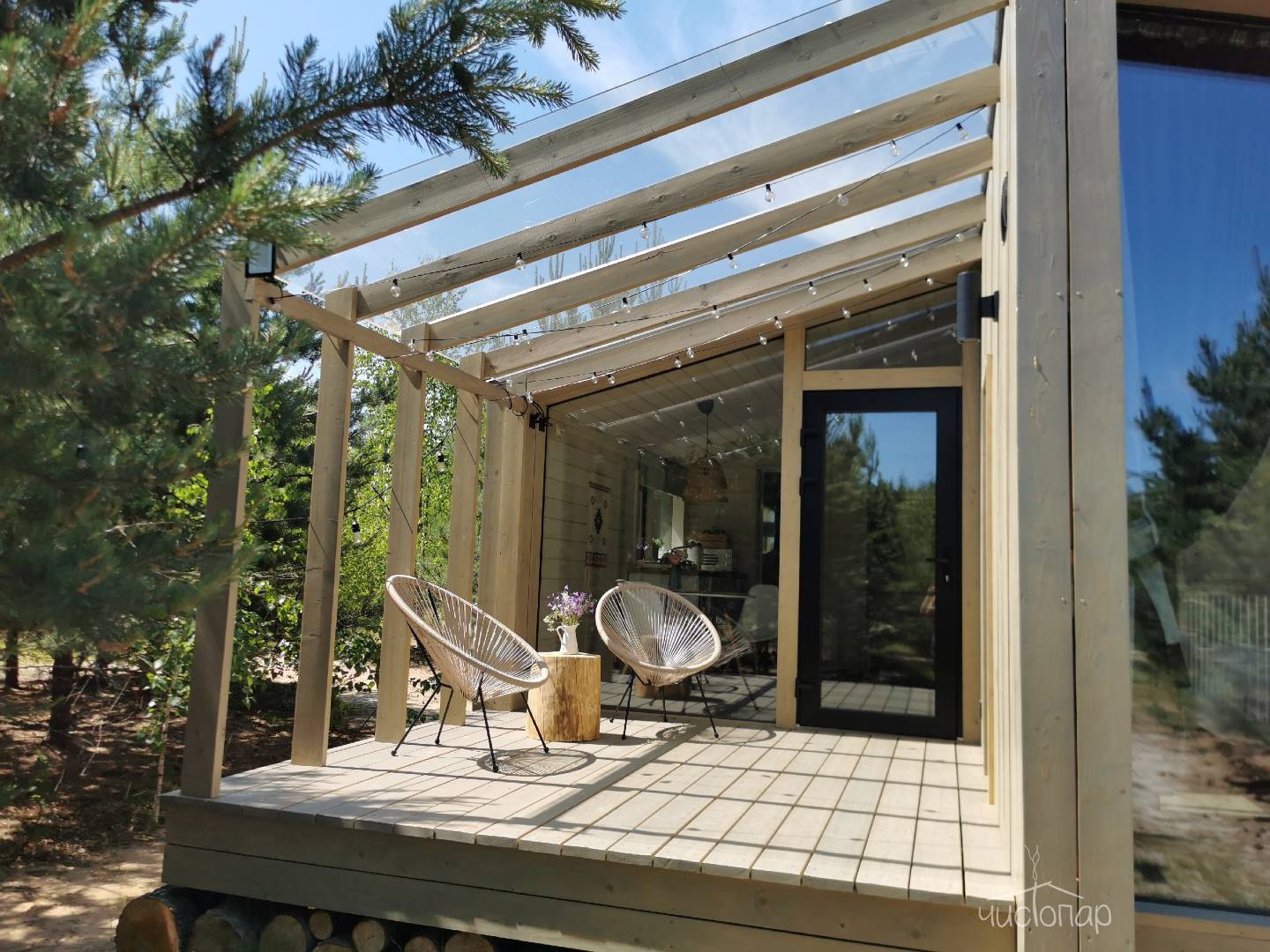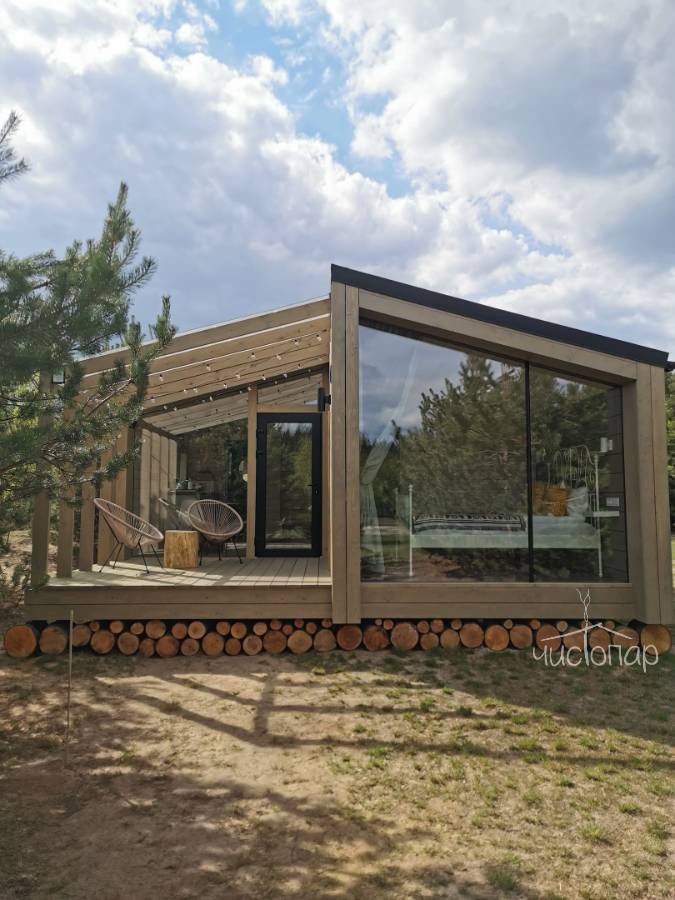 Дача ЛЕСДом 37 кв м в окружении молодых сосен на просторном участке, панорамный вид на восток, в доме: спальня, кухня-гостиная, санузел, веранда, терраса, зона барбекю с мангалом и костровая зона, сибирский чан на дровах (оплачивается отдельно).