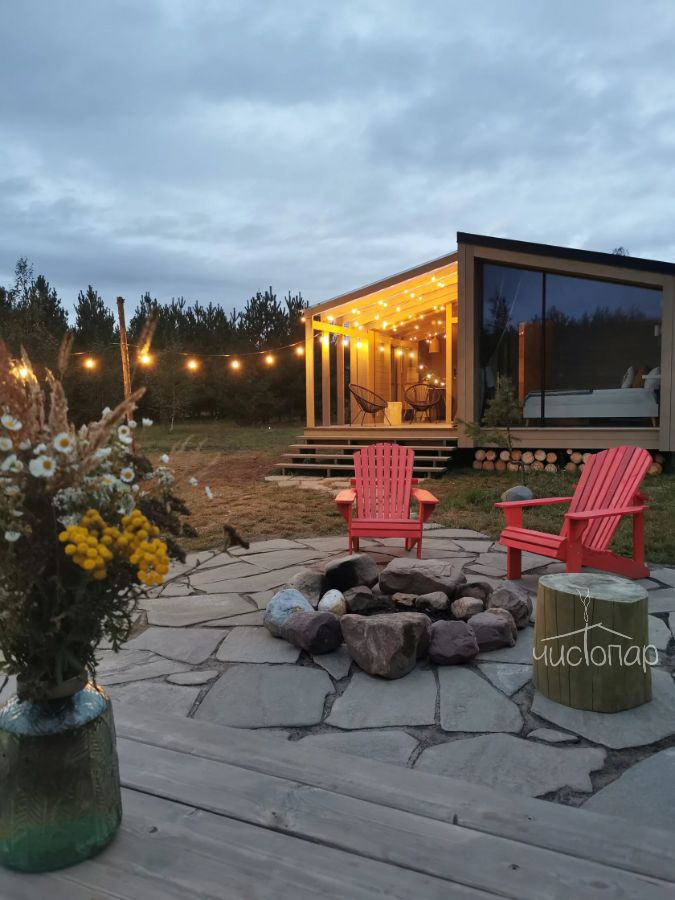 Маленькое семейное комьюнити из двух дач: дача ЛЕС и дача ПОЛЕ. Дачи построены с очень качественной, экологичной отделкой и стильным дизайном. Около каждой дачи установлен сибирский банный чан на дровах. Неподалеку от домиков расположена уютная баня с панорамным окном в лес.