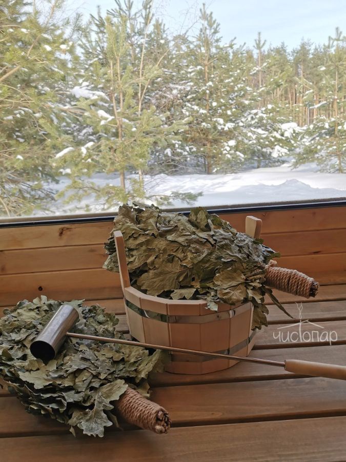 Любимый веник можно привезти с собой или приобрести у нас дубовый.