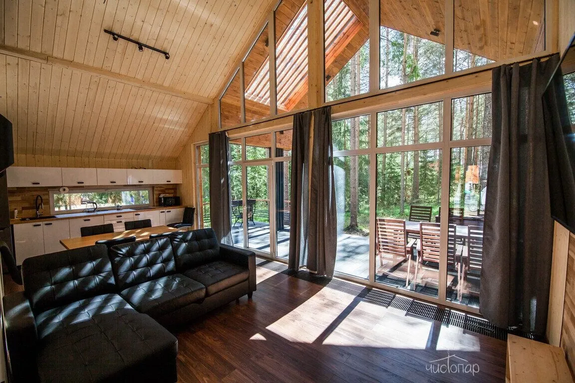 Дом расположен в сосновом бору на берегу озера Волго. Благодаря такому м месторасположению Вы сможете соединиться с природой и прочувствовать атмосферу спокойствия.