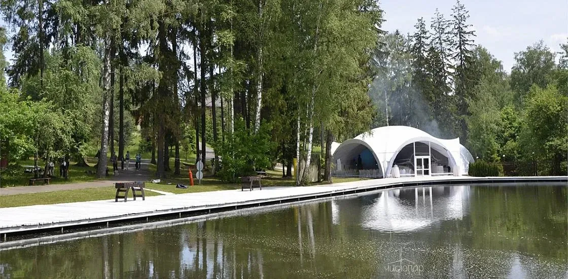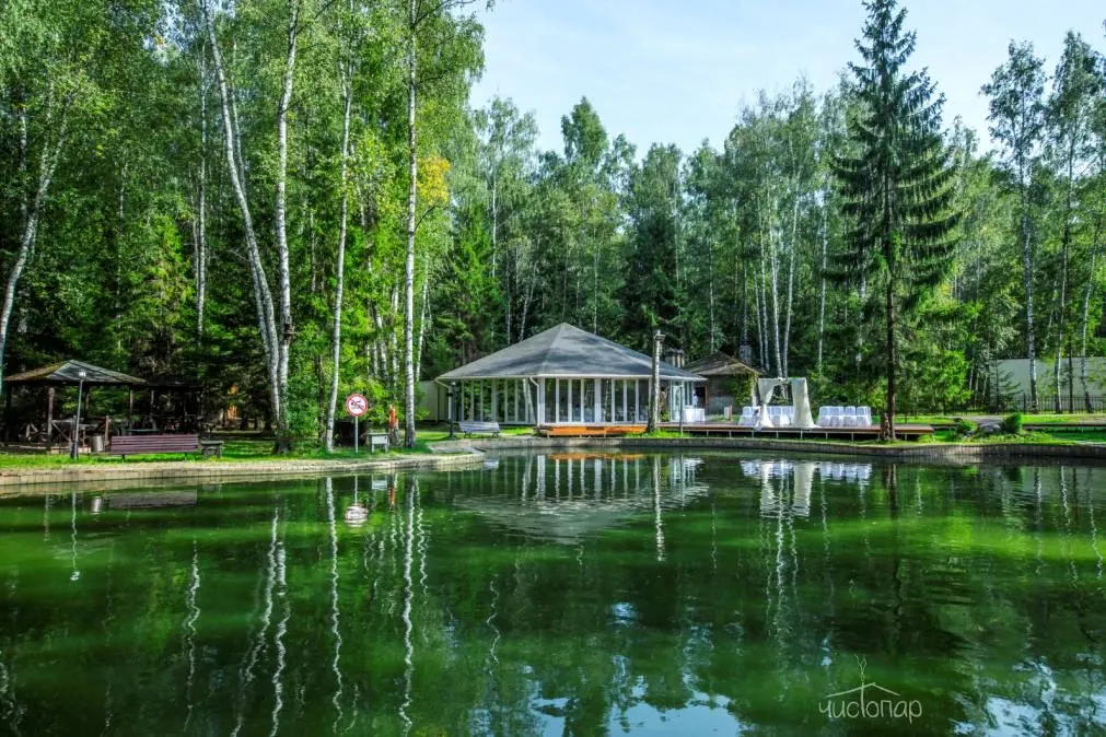 На территории комплекса за городом есть два пруда. Летом гости могут покататься в выходные на катамаранах или лодках, испытать свою удачу в рыбалке. Вдоль берега расположены беседки с мангалами, где можно пожарить шашлыки.