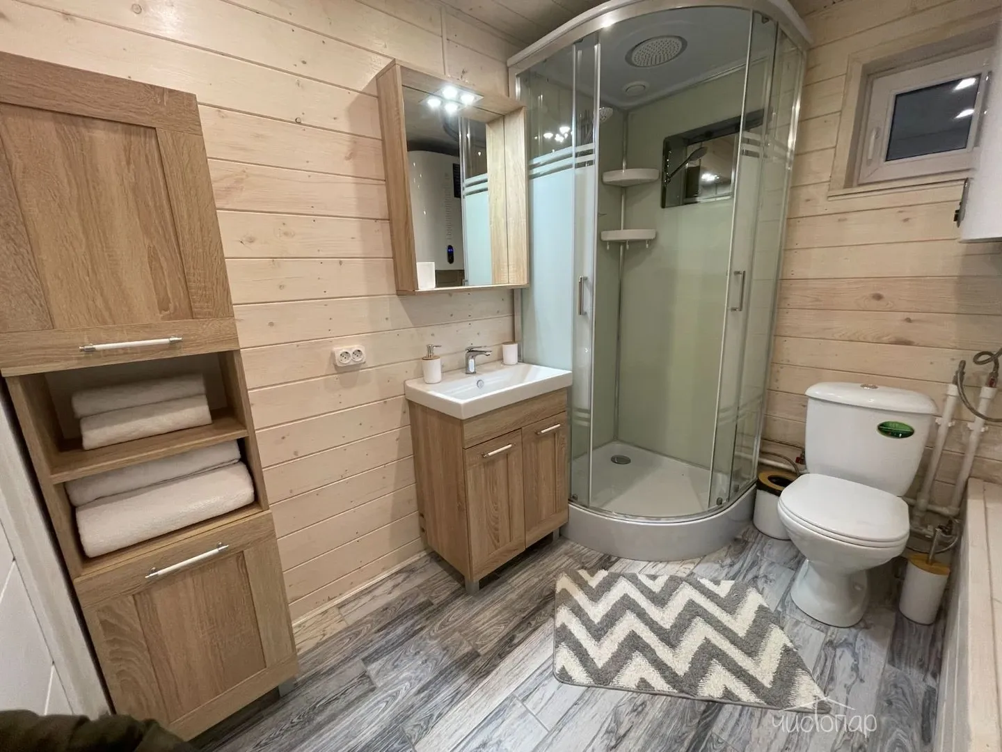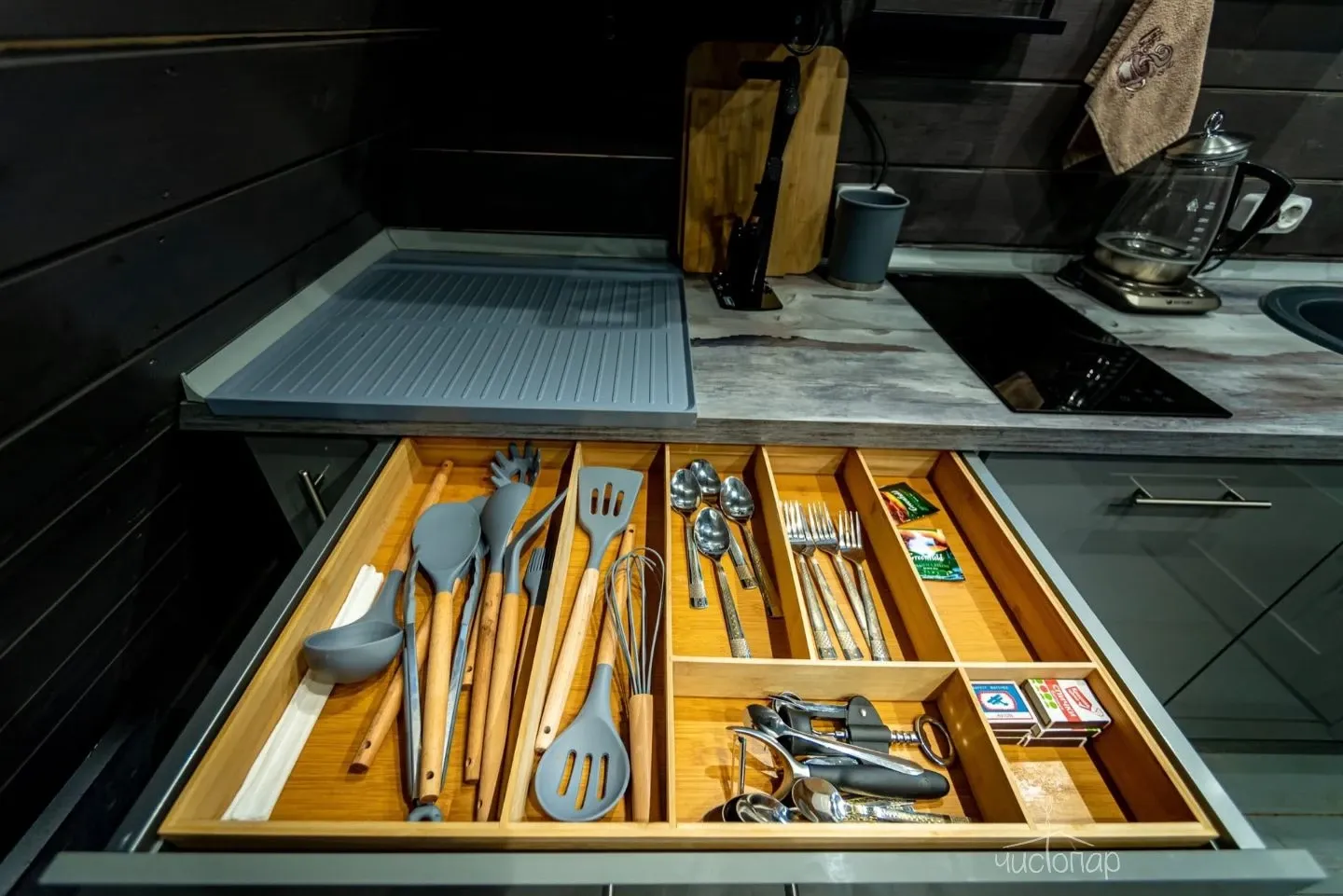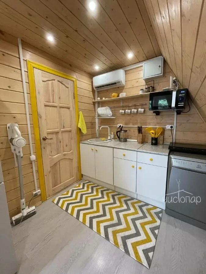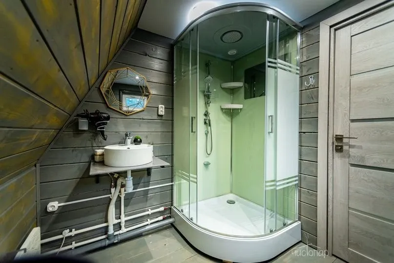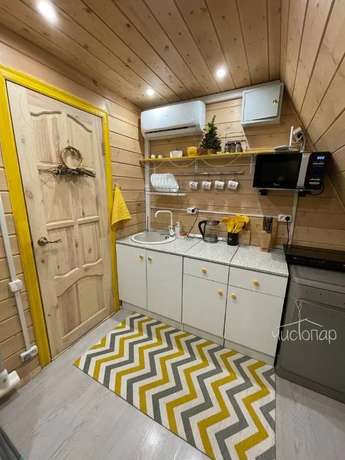 В каждом домике может остановиться до четырех человек. Здесь есть кухонный уголок, душ и туалет. Возле домика — мангал. Жить можно круглый год, для этого есть все необходимое. Есть одно «но»: WI-Fi ловит, а вот телефон — нет.