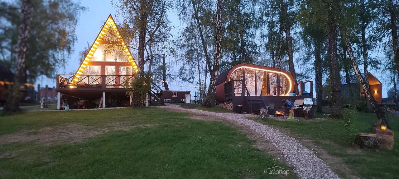Гостиница на берегу озера в березовой роще, где находятся НЕО-домики. В 20 м - собственный пляж с причалом, лодкой, SUP-бордами, баней «Викинг» и сибирским чаном.