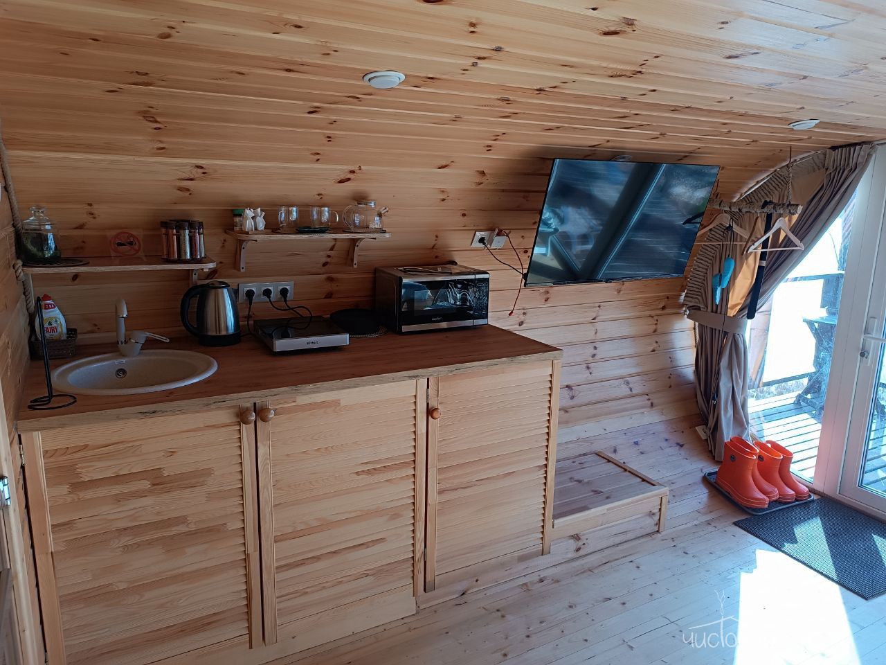 Бунгало УлейВ этом бунгало на 40м² есть 2 этажа, разместиться может 5 человек. В основе вытянутая 12-гранная сфера с очень положительной энергетикой. Спится здесь необыкновенно хорошо, особенно в изолированной спальне на втором этаже.