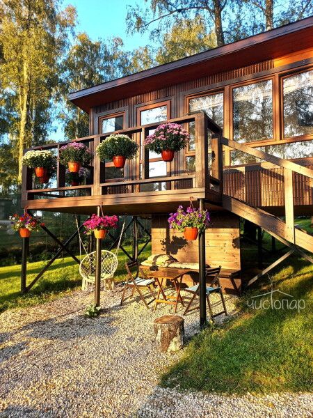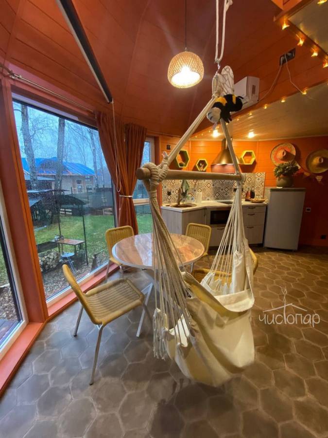 Бунгало ГНЕЗДОПлощадь дома: 25 м², площадь участка: 30 сот., 1 этаж, для отдыха: баня или сауна, санузел в доме. Особенность проживания — здание приподнято высоко над землей, оттуда открывается замечательный вид. Питомца можно взять с собой.