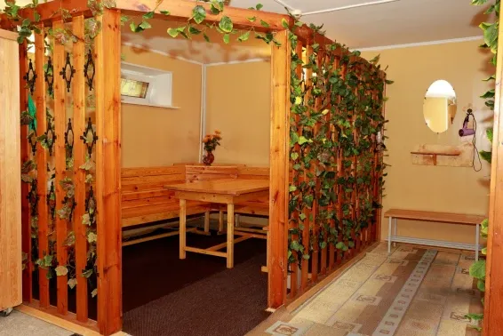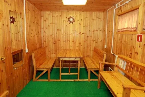 На территории базы отдыха гостей ждёт русская баня с купелью и комнатой отдыха. Внутри комплекса расположена финская сауна с бочкой и комнатой отдыха