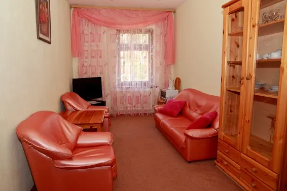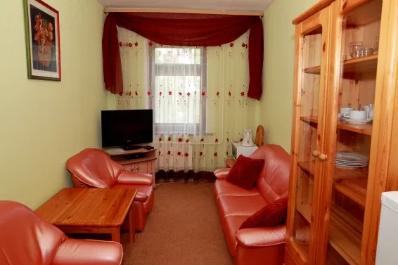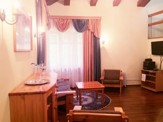 В номерах «Люкс» имеется все необходимое для комфортного отдыха: двуспальный диван, двуспальная кровать/две односпальные кровати, шкаф для одежды, шкаф для посуды, набор посуды, холодильник, СВЧ-печь, электрический чайник, телевизор.