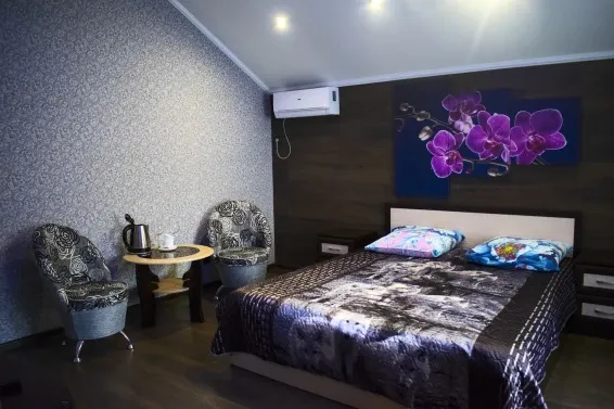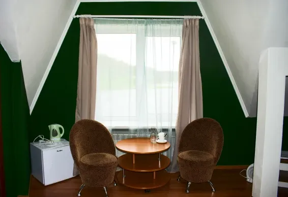 Для размещения отдыхающих база предлагает номера категорий «Эконом», «Стандарт», «Люкс», «Апартаменты» и «номер для новобрачных» в двухэтажном гостиничном корпусе, а также отдельный гостевой домик с баней для компании до 6 человек, семейный дом на 5 человек (двухкомнатный)