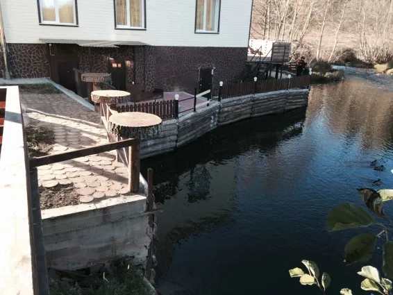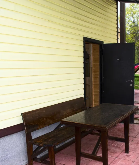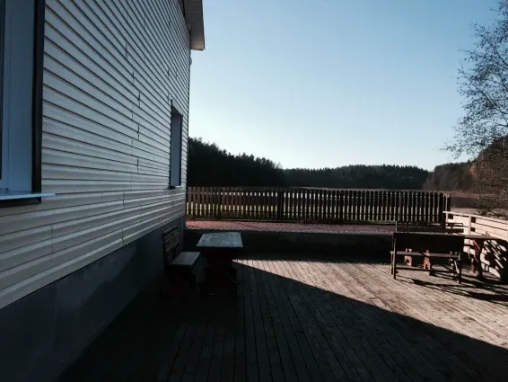 На территории базы есть маленькая русская баня на дровах на 5-6 человек. Расположена баня на берегу озера, имеет спуск в воду с террасы бани.