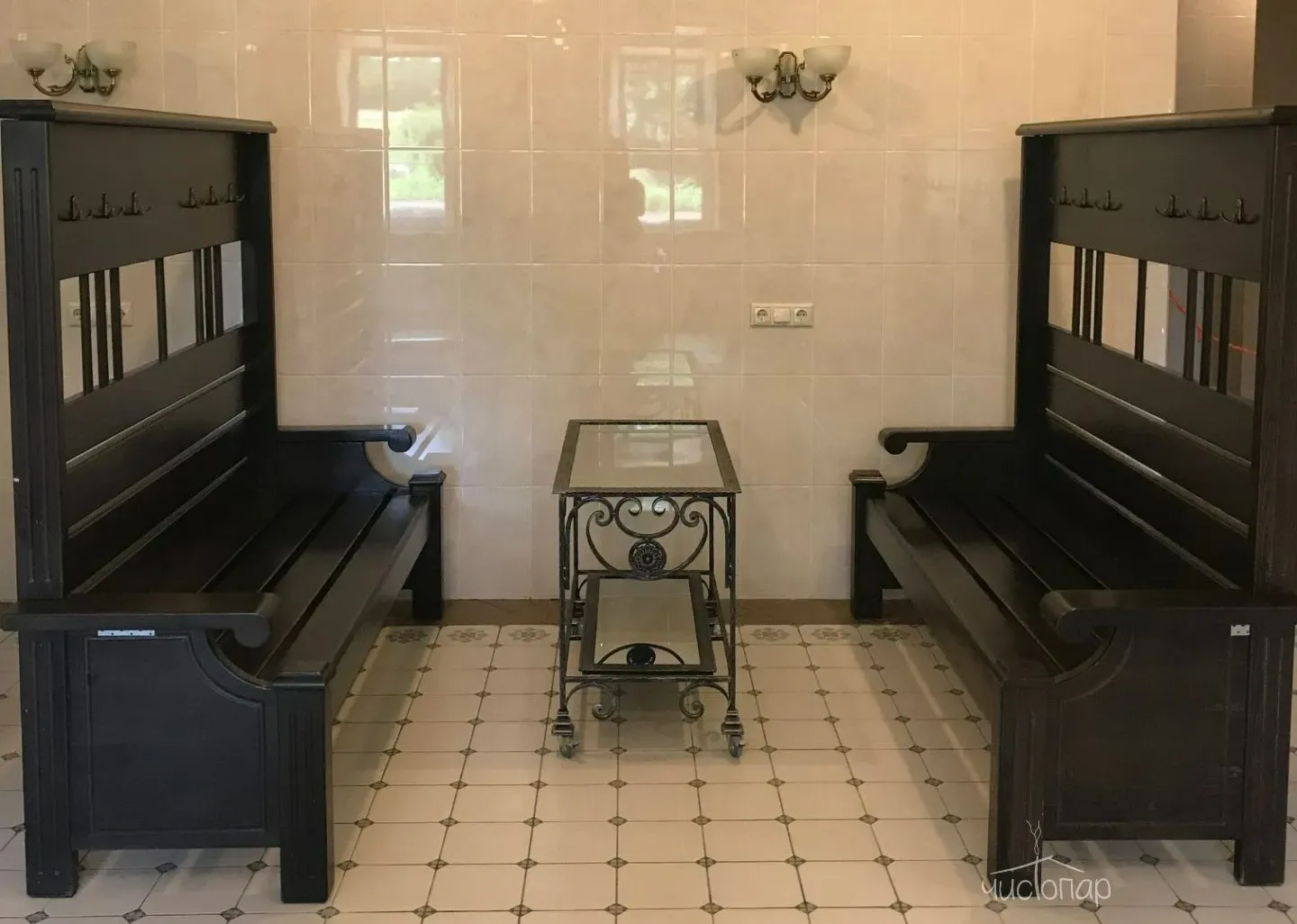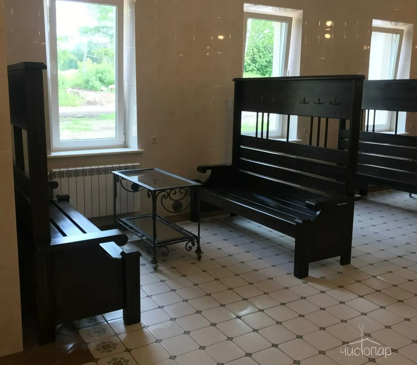 В парной для доступа кислорода предусмотрено окно и вытяжная вентиляция.
