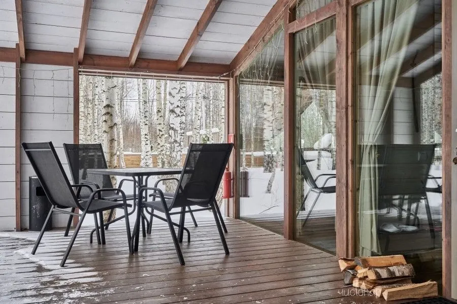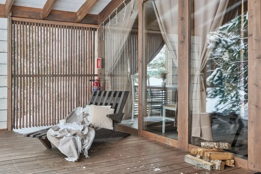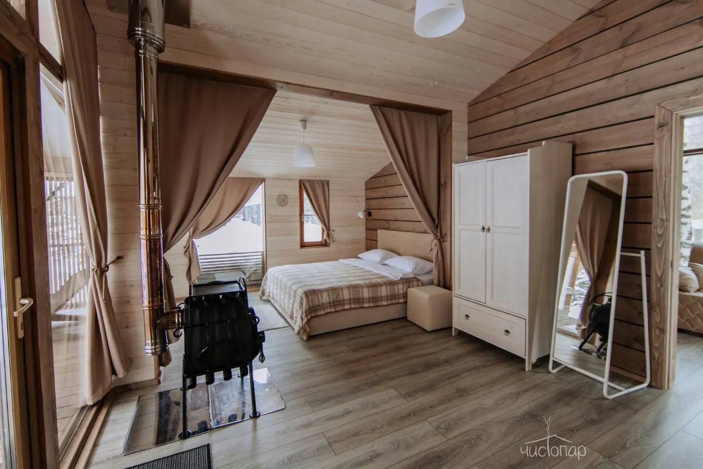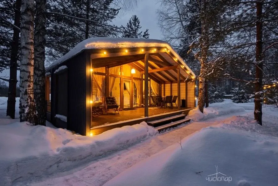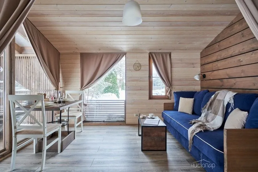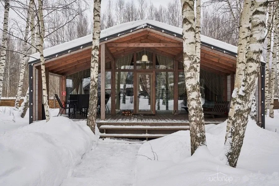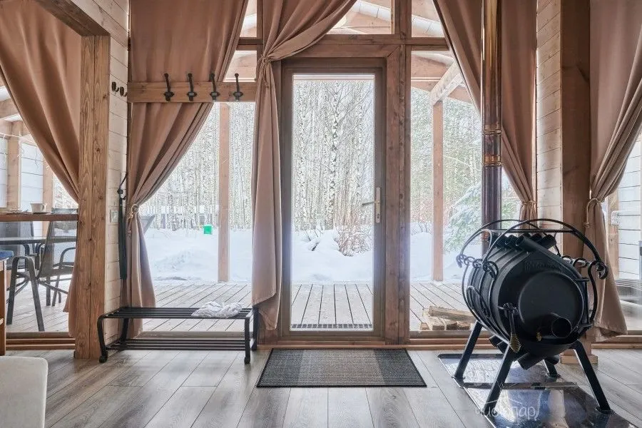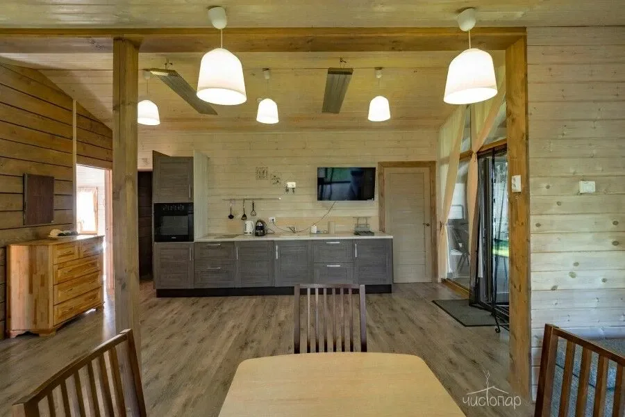 Барнхаус #5 СтрижДом для комфортного семейного отдыха на 6-8 человек. Общая площадь 100 кв.м (24 терраса и 76 кв.м. основная жилая площадь). В распоряжении гостей кухонная зона, душ с тёплыми полами, два туалета, три отдельных спальни, зал с двумя диванами-кроватями, печь-камин, система автоматического поддержания температуры, шторы блэкаут.