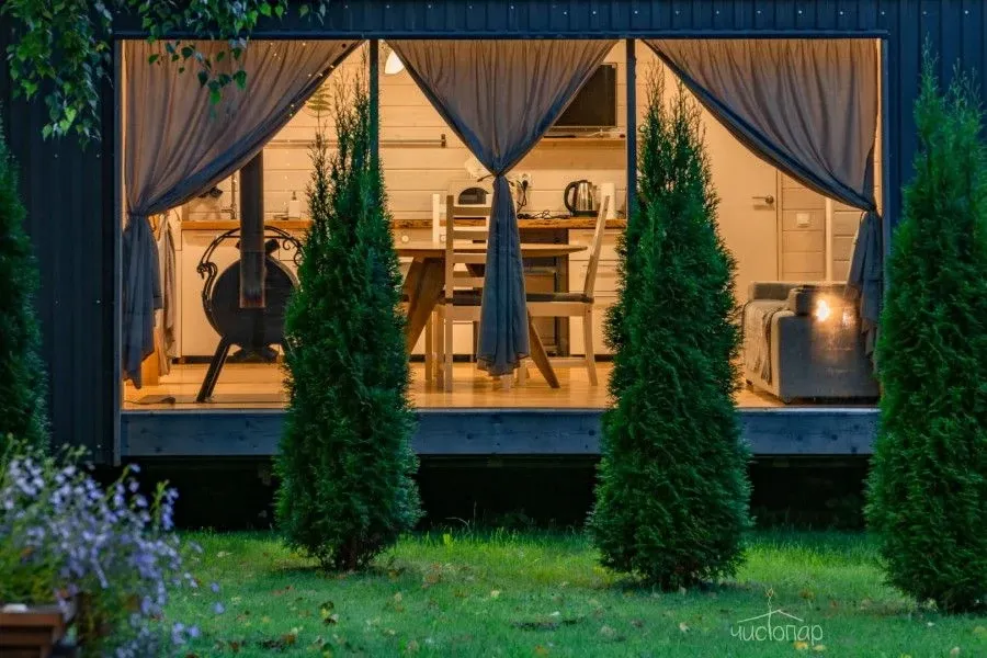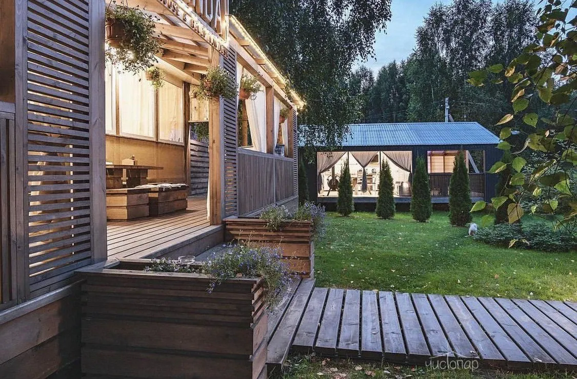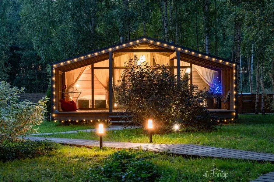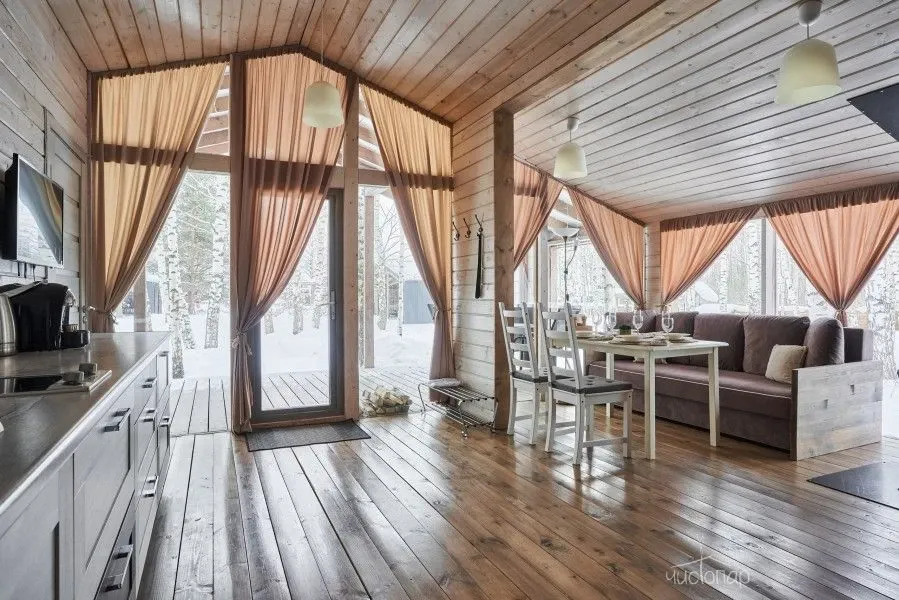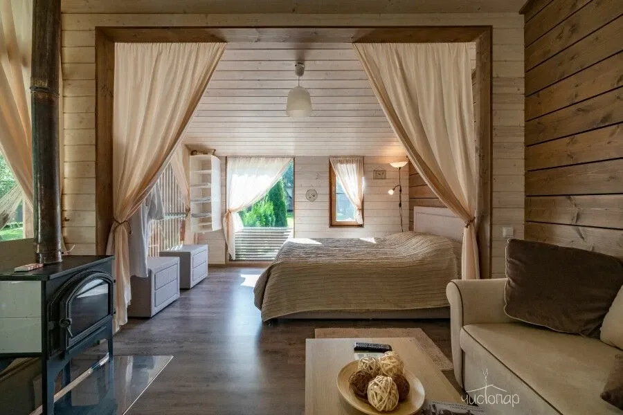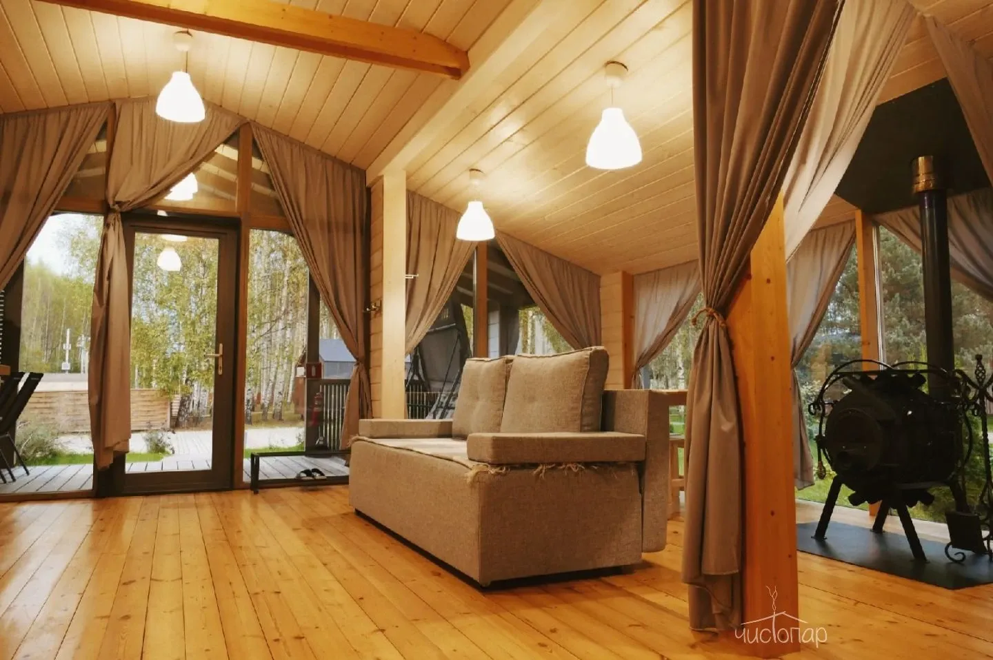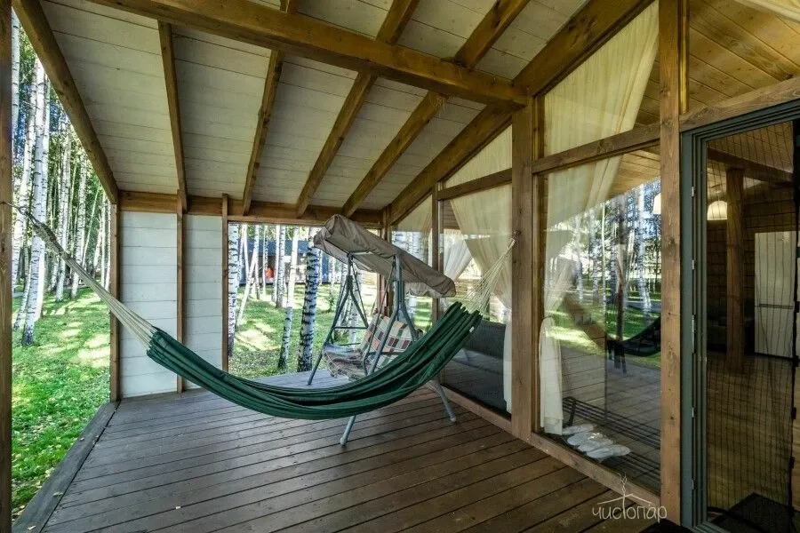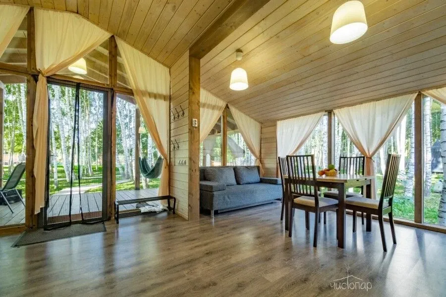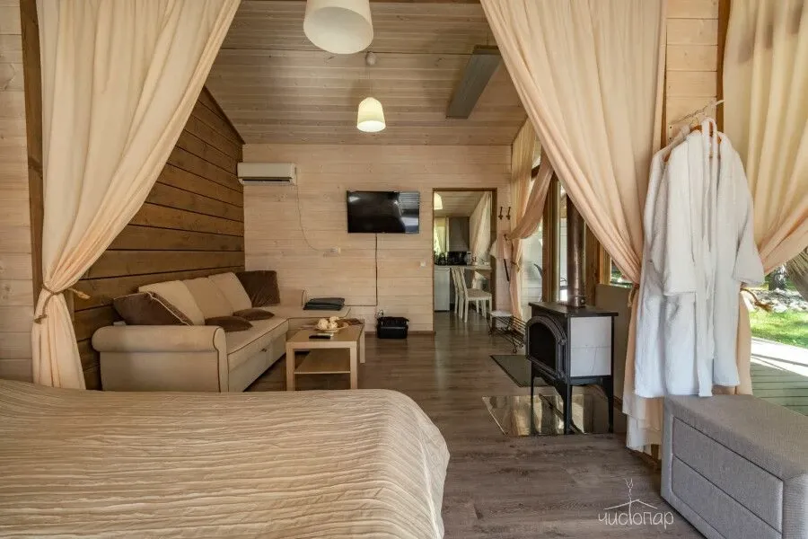 Уютные домики для проживания гостей построены среди берёзовой рощи на берегу реки Нерль. Дома рассчитаны на разное количество гостей: от 4 до 10. Домики с просторной гостиной, стильным дизайнерским интерьером.