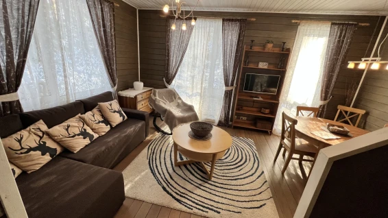 Современный коттедж рассчитан на максимальное проживание 10-ти человек или комфортное размещение 6-ти человек. В нем предусмотрена сауна, душ и туалет, а также своя мангальная зона.
