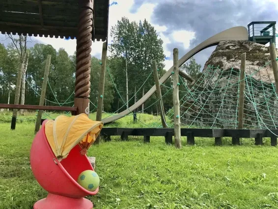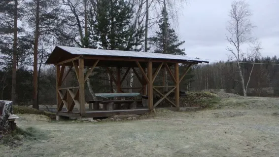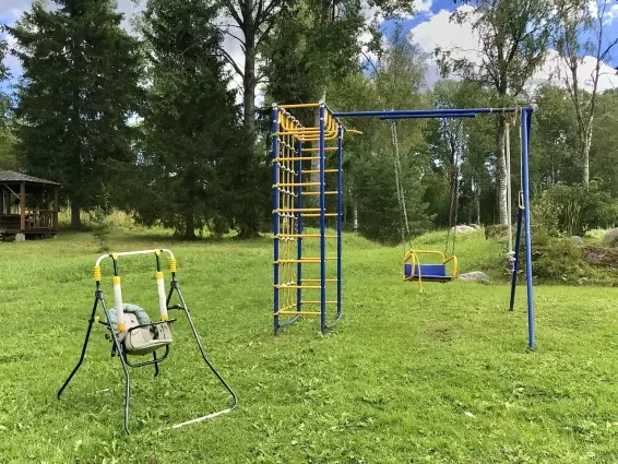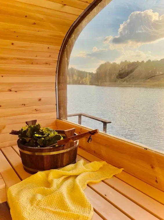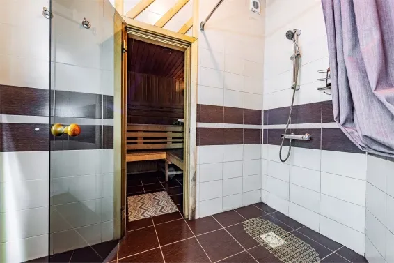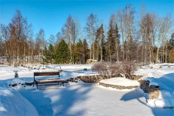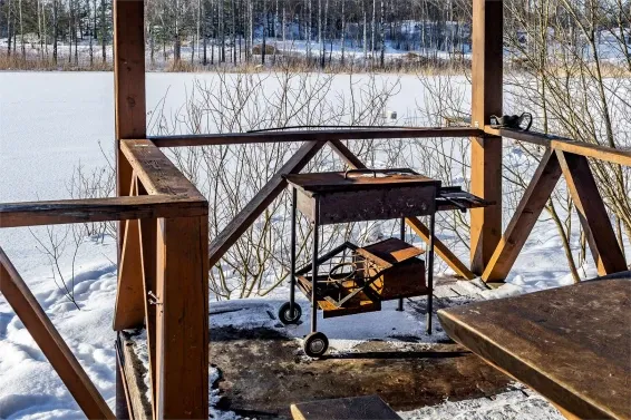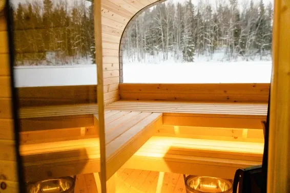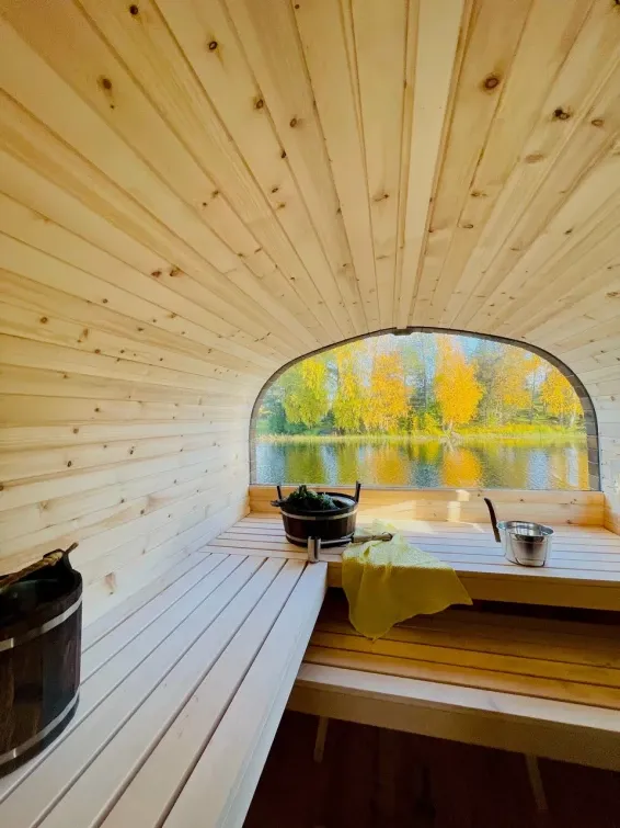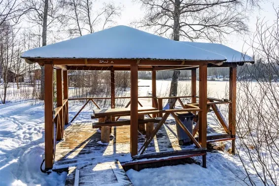 Русская баня расположена в отдалении от коттеджей, окружена деревьями и кустарником. После парилки можно нырять в Вуоксу. Зимой рядом с баней есть оборудованная прорубь.