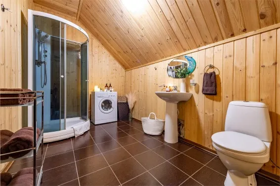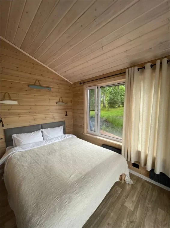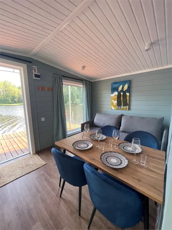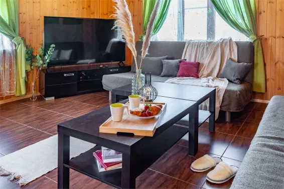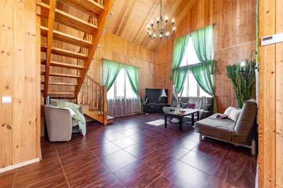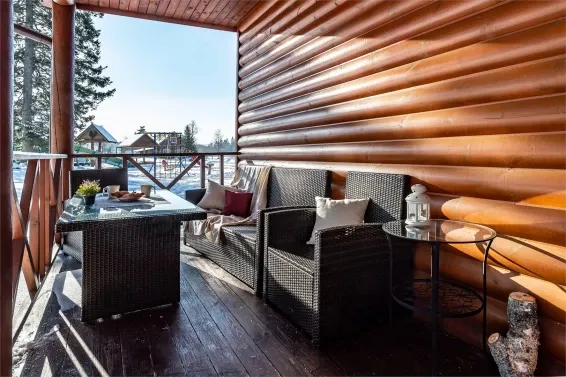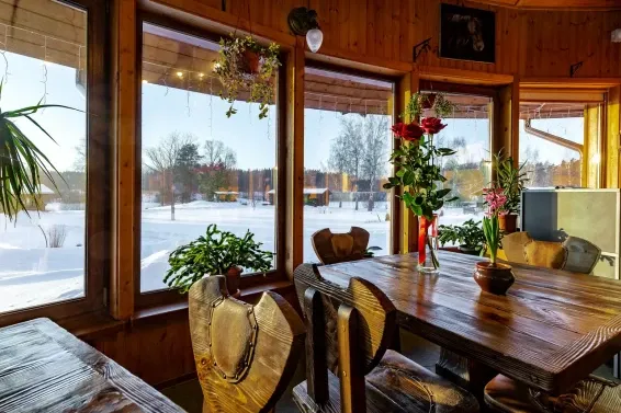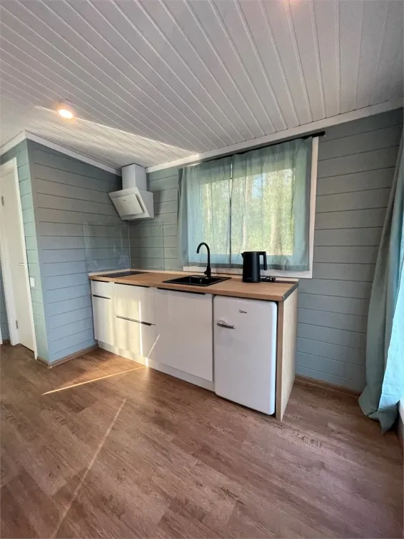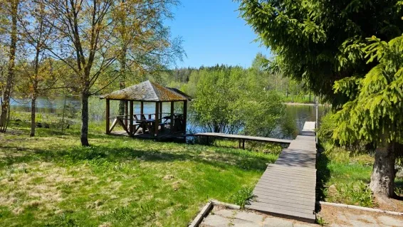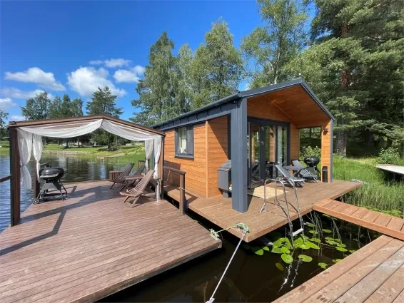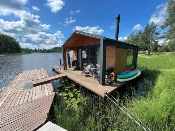 Этот одноэтажный коттедж на берегу Вуоксы подойдет любителям скандинавского стиля. Он очень уютный и компактный – всего 70 кв. м. Здесь хорошо проводить время вдвоем или небольшой компанией - от 4 до 6 человек. В коттедже две спальни (одна с большой кроватью, вторая - с двумя односпальными), гостиная с кирпичным камином, телевизором и мягкой мебелью, кухня с необходимой посудой и техникой, финская сауна. На территории возле домика, ближе к реке, установлена беседка с мангалом.