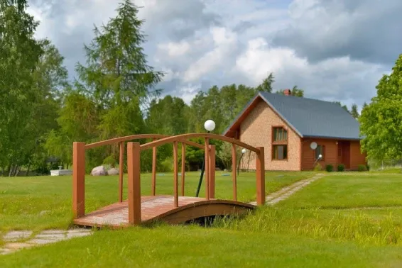 На территории клуба расположены пять комфортабельных деревянных коттеджей, которые могут быть одно- или двухэтажными и рассчитаны на размещение от 4 до 10 гостей. Каждое жилье оснащено собственной беседкой с мангалом.