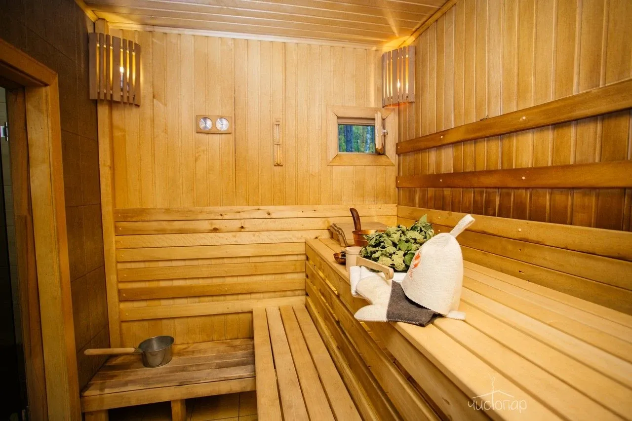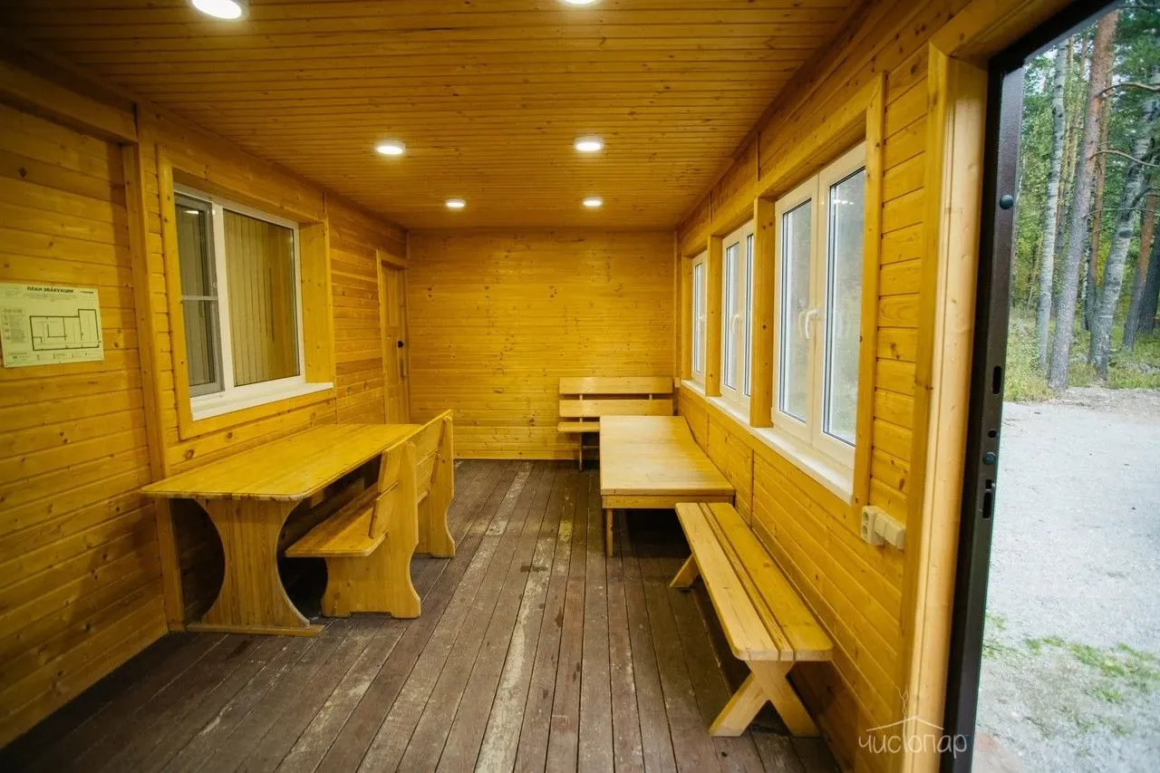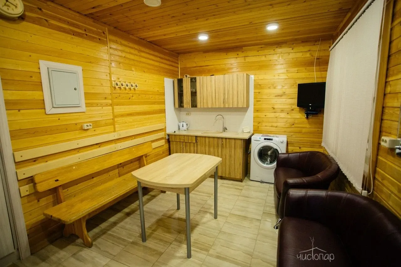 • Русская банька на дровах с двумя зонами отдыха, обливным чаном,