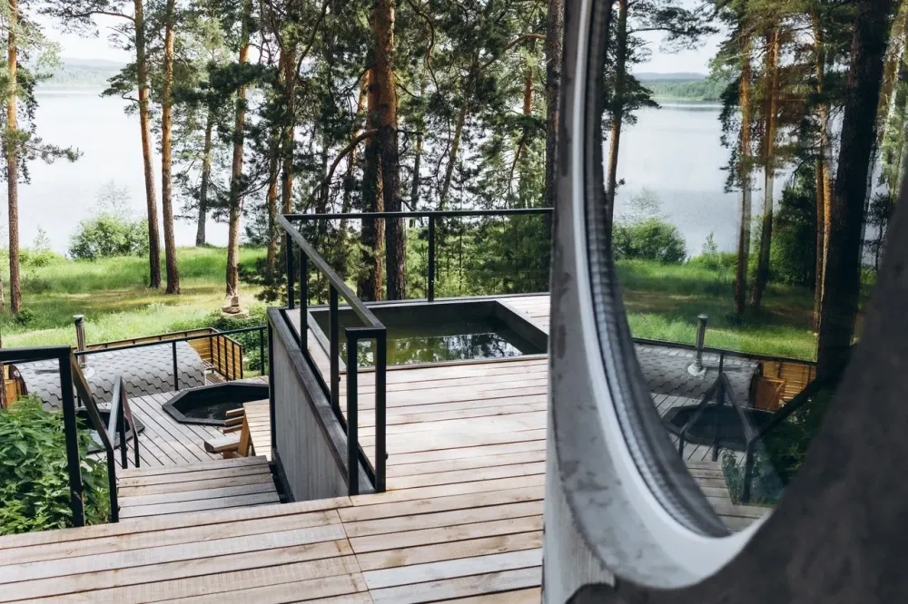 - Аренда термального комплекса: баня-улитка с иллюминаторами, чаны, бассейн