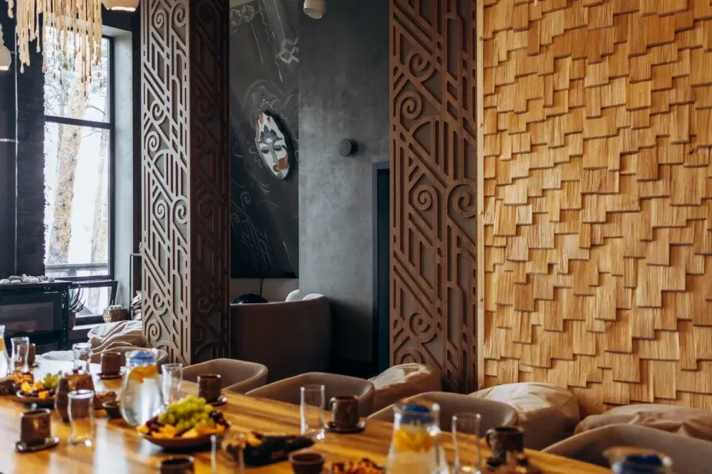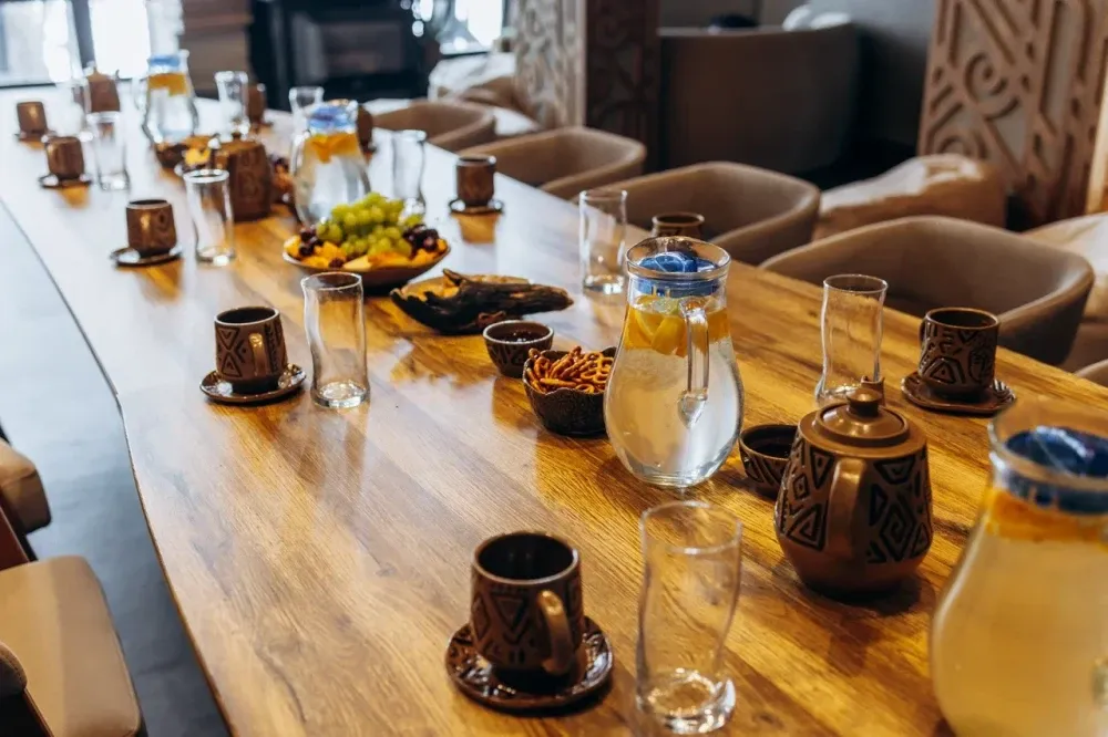 - Вау-фишки: сытный ужин, безлимитный фуршет с чаями, эксклюзивный дизайн и уникальный опыт отдыха в термальном комплексе "Племя".