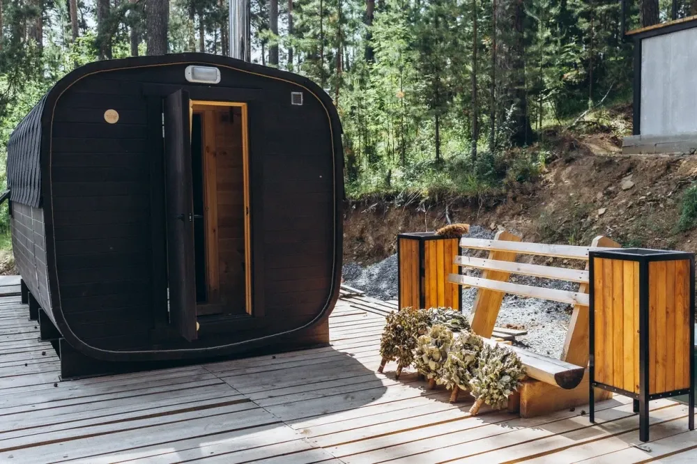 Круглая баня-улитка с панорамным видом, индивидуальная баня на 4 человека, термальные чаны, ледяная купель, авторские программы и мастер-классы.