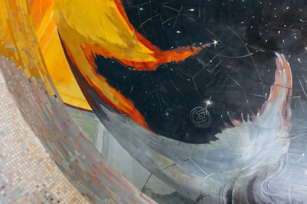 - Ручная мозаика, олицетворяющая четыре стихии (огонь, вода, земля, воздух).