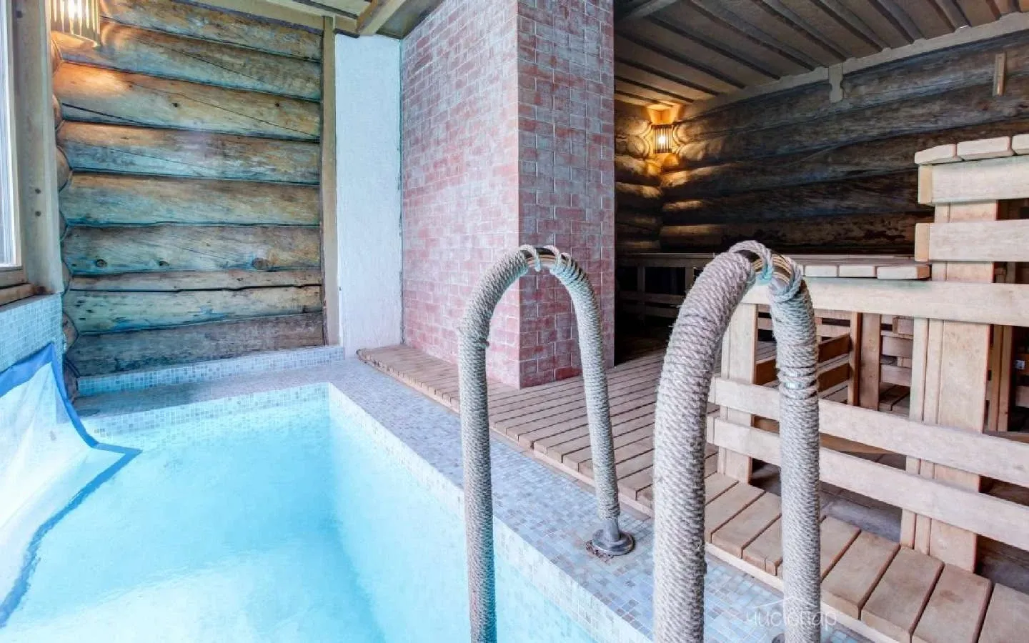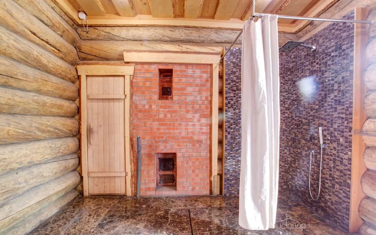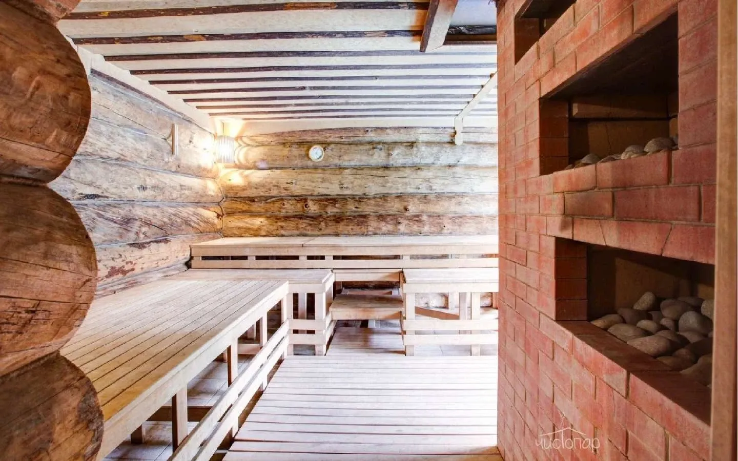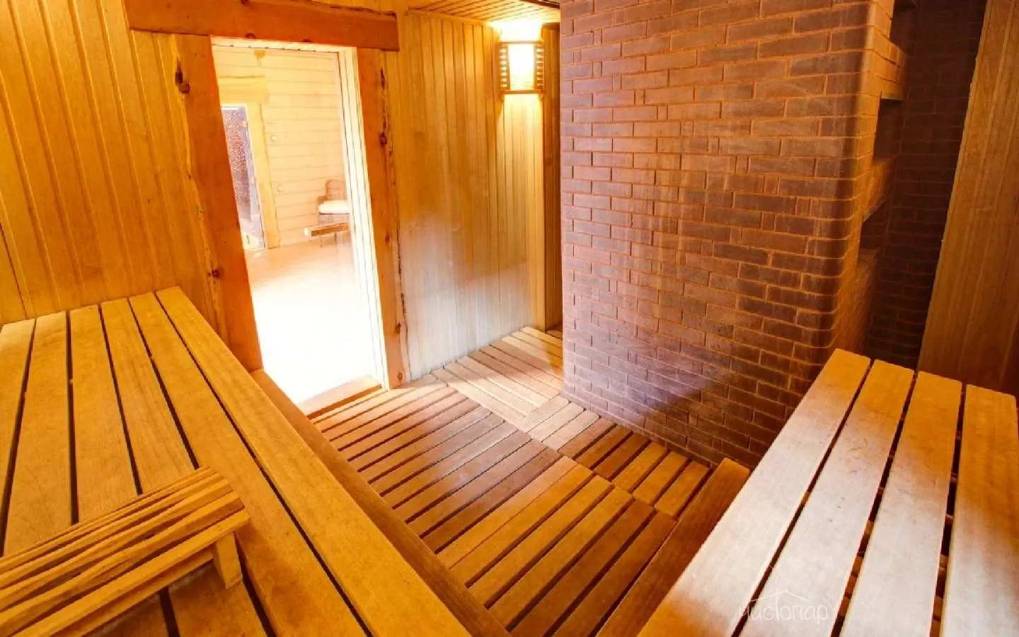 Финны не представляют своей жизни без парной, она есть в каждом многоквартирном доме как самое святое, без чего просто не обойтись. И предпочитают они именно сухой пар, чтобы «до косточек», а после – обливания холодной водой. Мы постарались точно воссоздать финскую баню, с учетом всех мелочей, чтобы порадовать наших гостей лучшим изобретением соседней страны. А для тех, кому сухой пар будет слишком непривычен, влажность воздуха можно легко регулировать, плеснув нужное количество воды на камни. А после парной – обязательно выйти во дворик и окунуться в подготовленную купель, что особенно приятно сделать на морозном воздухе.
