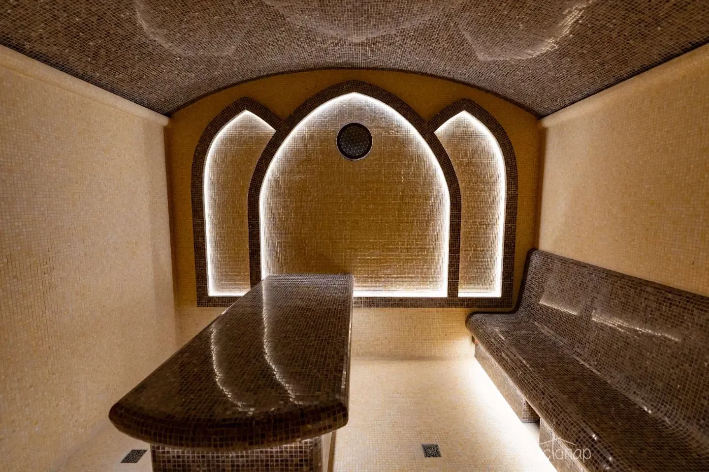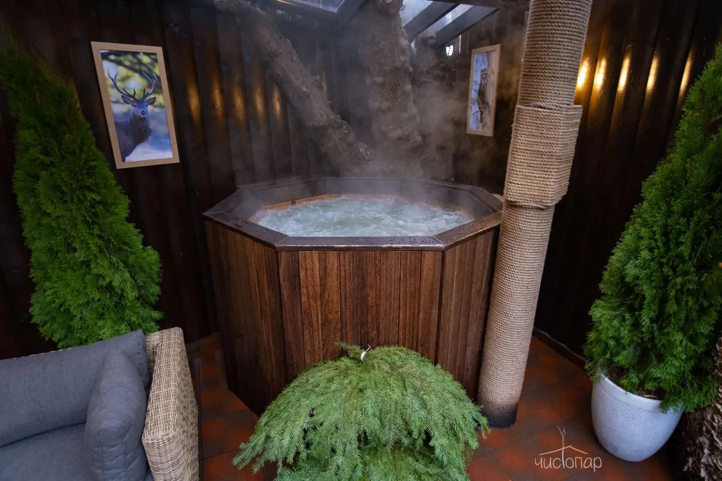 В банном домике имеется все, что необходимо для полноценного отдыха. В парилке, выполненной из натурального дерева, вы можете насладиться превосходным паром. А после – охладить свое тело в просторных душевых. При таком чередовании достигается по-настоящему приятный и очень полезный для здоровья температурный контраст.