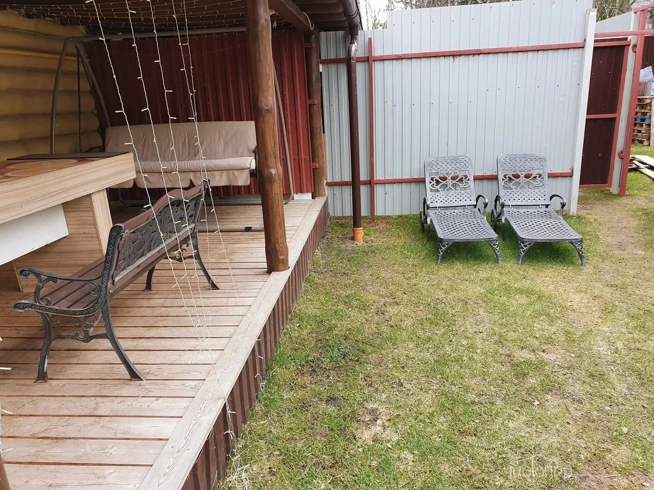 Есть территория с крытой верандой, мангалом, столом, лавками, качелями, лежаками.