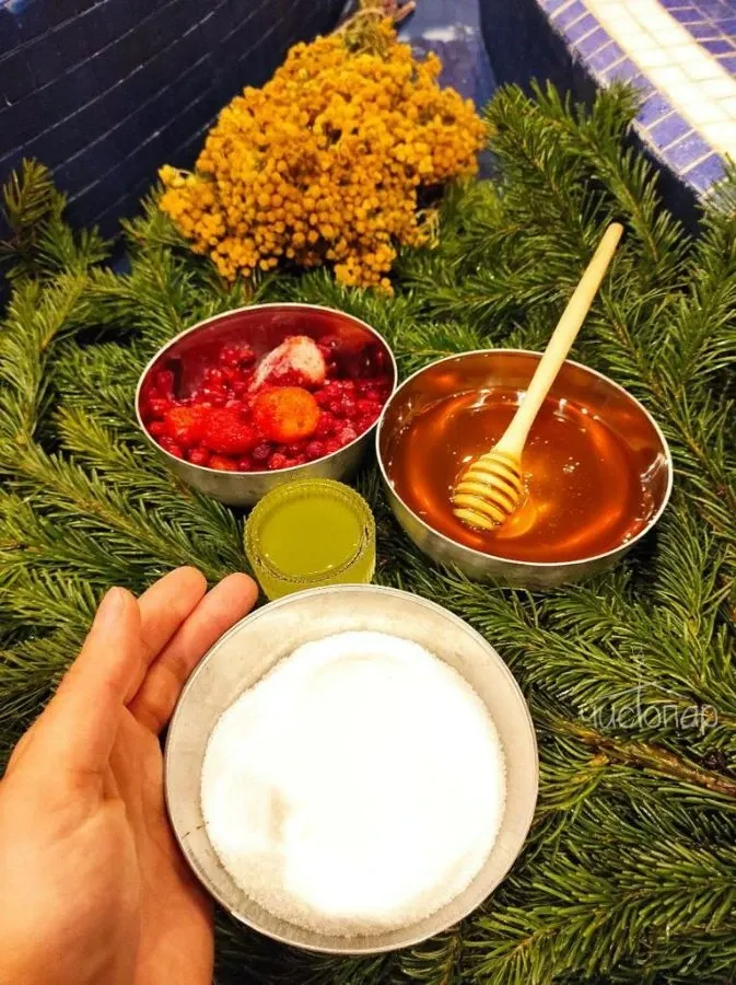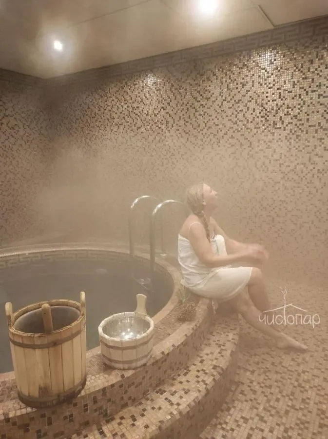 В последний заход в парную гостей ждет контрастное обтирание льдом и грейпфрут для легкого пилинга лица и области декольте.
