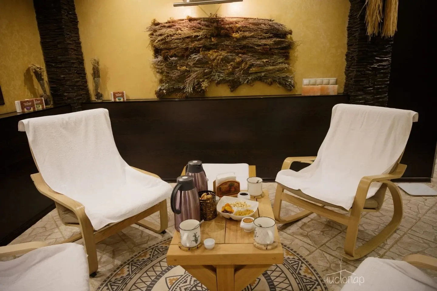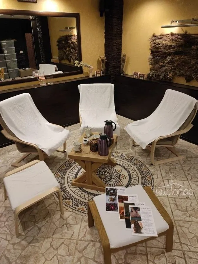 Затем девушки меняются и вторая группа проходит в обновленную парную с новыми травами. Таким образом, группы постоянно меняются парная - комната отдыха.