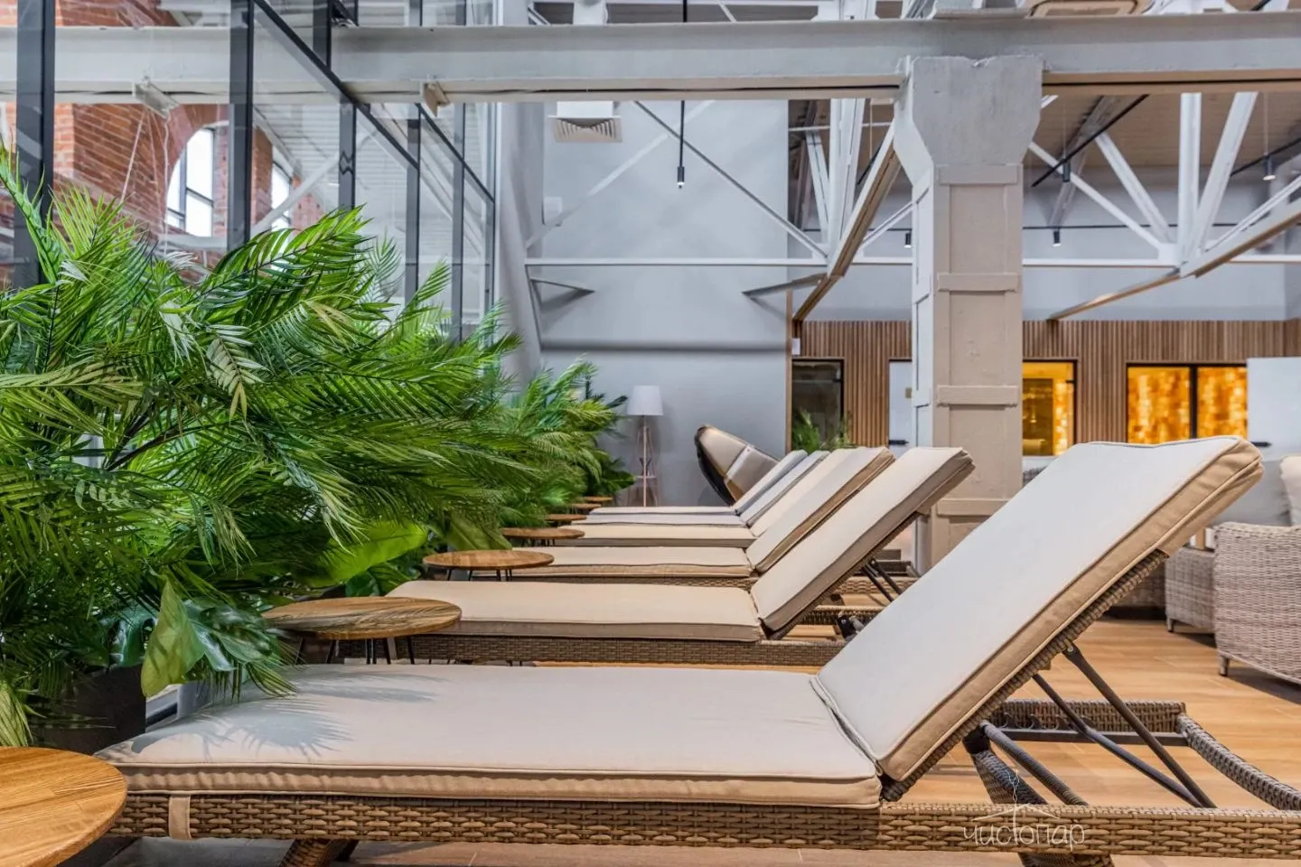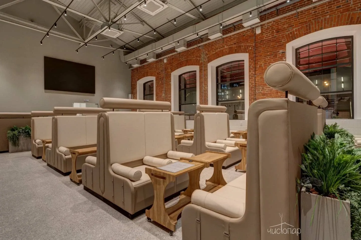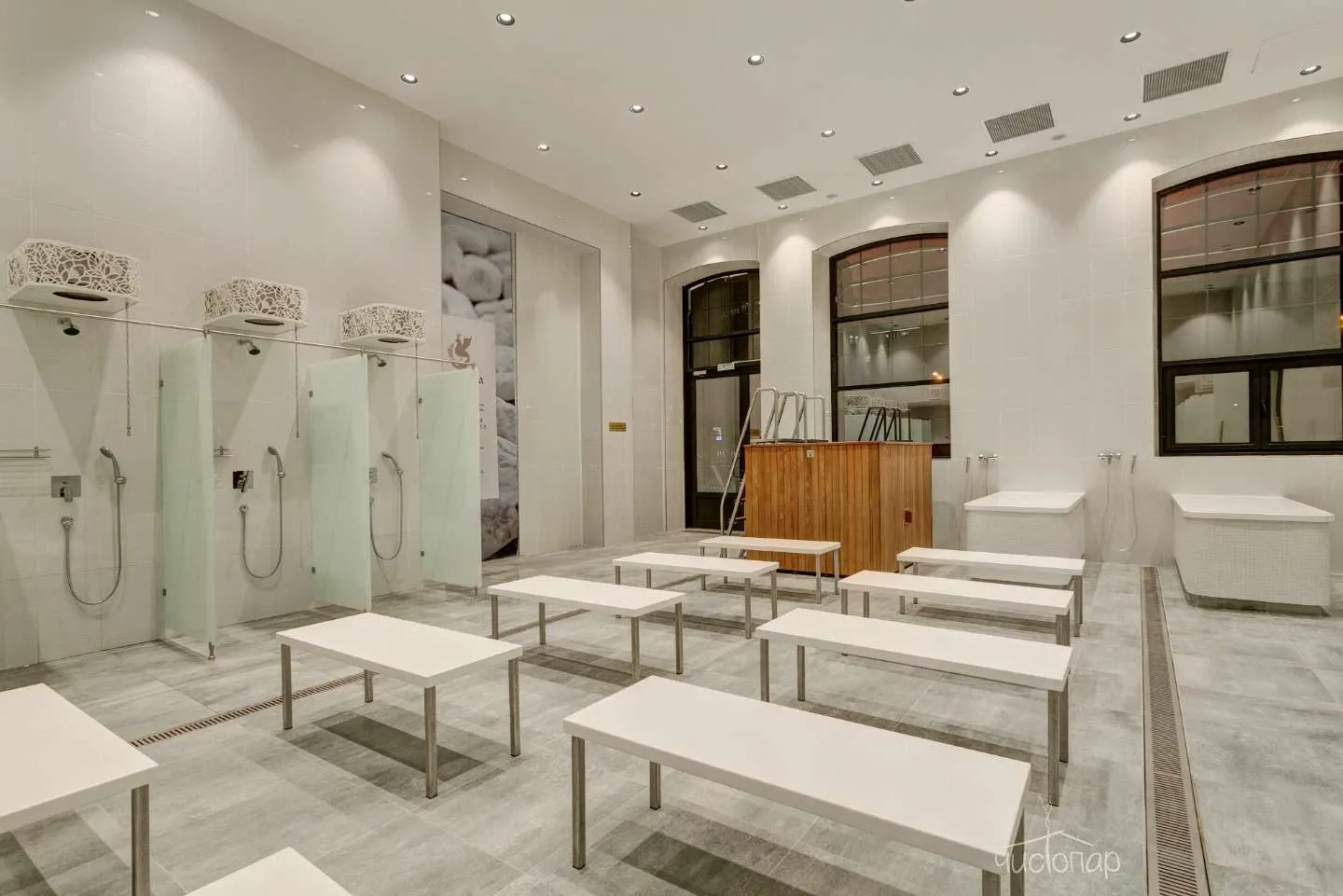 SPA-зал рассчитан на 50 гостей, обладает массажными кабинетами, соляными комнатами, хаммамом и лаунж-зоной с баром.