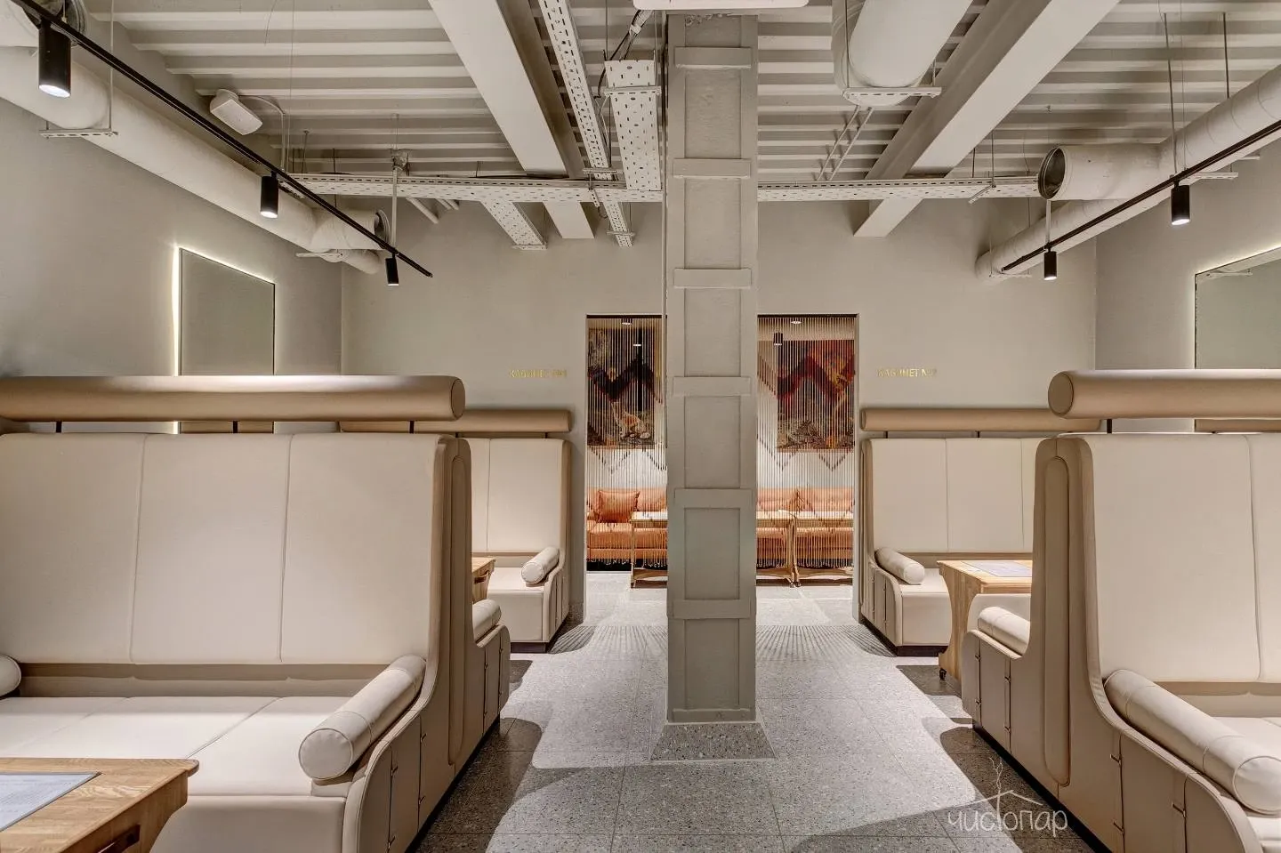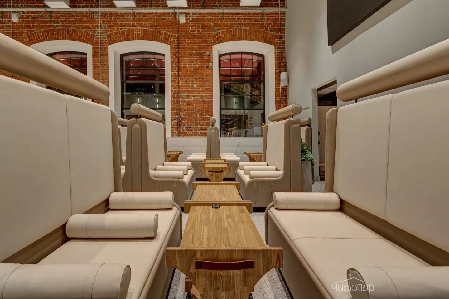 КазаньКазанские бани вобрали в себя булгарские и восточные традиции. Булгар, проживающих в древние времена на Татарстанской земле, называли «люди воды»: волнистый узор, ассоциирующийся с водой, даже является частью национального орнамента. В Казани ханы начинали свое правление именно со строительства бани: это было верным способом завоевания расположения народа. Прикоснуться к истории и отдохнуть по-хански можно в VIP-апартаментах «Казань». Интерьер татарской бани - «татар мунчасы» - выполнен в спокойных и сдержанных тонах и настраивает на ощущение гармонии и баланса. Классические национальные орнаменты в дизайне, узнаваемая обивка мебели, подушки ручной работы, арт панно транслируют традиционную татарскую стилистику, добавляя аутентичной эстетики и колорита - легко, без перегруженности и излишней акцентности, мягко и деликатно, как и подобает в татарской бане.