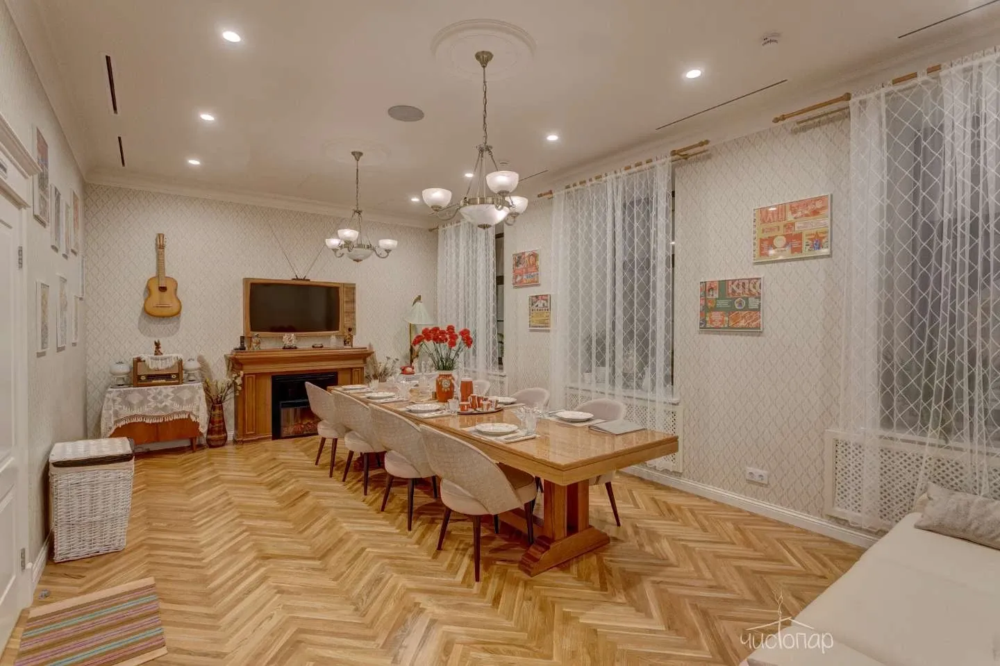 Предлагаются номера СССР, Азия, Шале, Казань и Плёс, вместимостью от 6 до 10 человек с минимальной арендой в 4 часа.