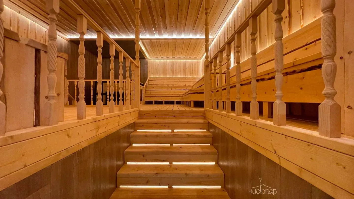 Русские парные, купели, помывочные, снежная комната, парная для процедур, бьюти-зона, соляной грот, гималайская соляная сауна, релакс-комната с водяными матрасами, финская сауна, хаммам.
