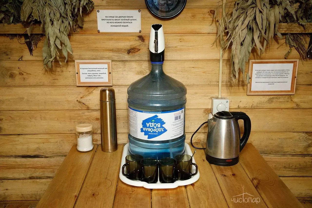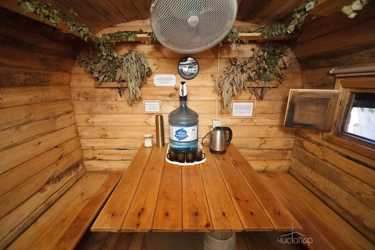 Кроме того, в стоимость аренды входит бесплатный чай, предоставляемый в термосе объемом 1 литр, а также полотенца и простыни, которые также подготавливаются для каждого клиента. Для удобства посетителей в бане имеется фен. За дополнительную плату можно заказать дубовые веники.