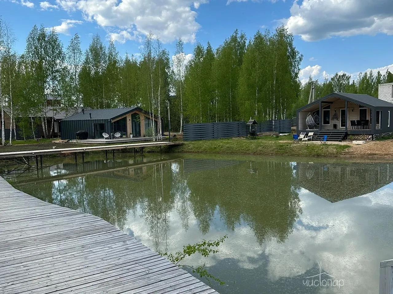 Изюминкой этого коттеджа является просторный санузел с красивой угловой ванной, позволяющей создать ощущение спокойствия и умиротворения. Гостиная, совмещенная с кухней и обеденной зоной с видом на пруд, позволит насладиться каждым моментом отдыха.