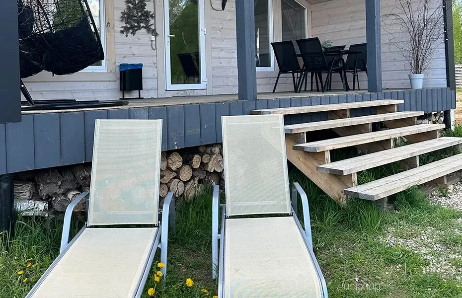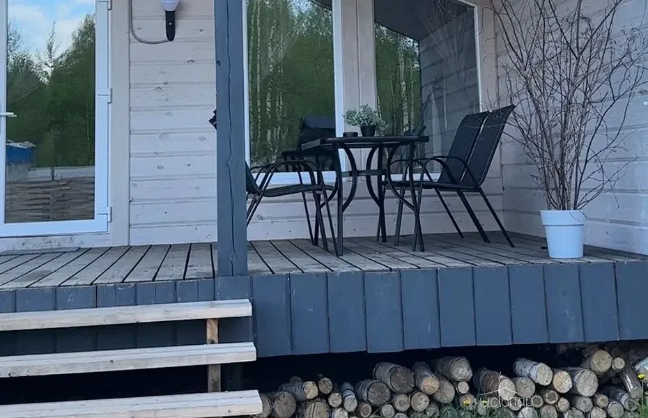 Коттедж имеет свою мангальную зону и уличную мебель.
