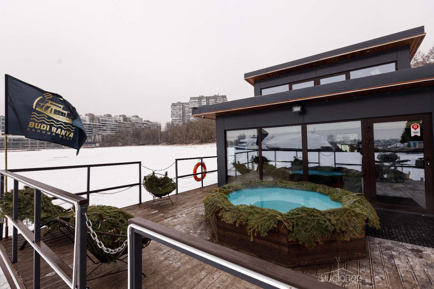 BudiBanya – новый яркий и не имеющий аналогов премиальный продукт на банном рынке Москвы, сочетающий в себе комфорт первоклассной яхты и лучшие традиции русской бани и wellness. К услугам гостей просторная парная, гостинная, оборудованная палуба с купелями, шезлонгами и мангалом.