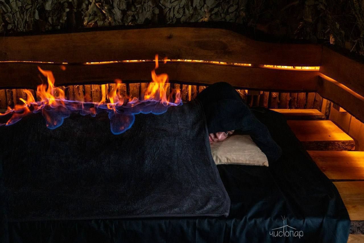 - парение после нанесения на тело натурального масла (кокос, кунжут, виноградная косточка)
