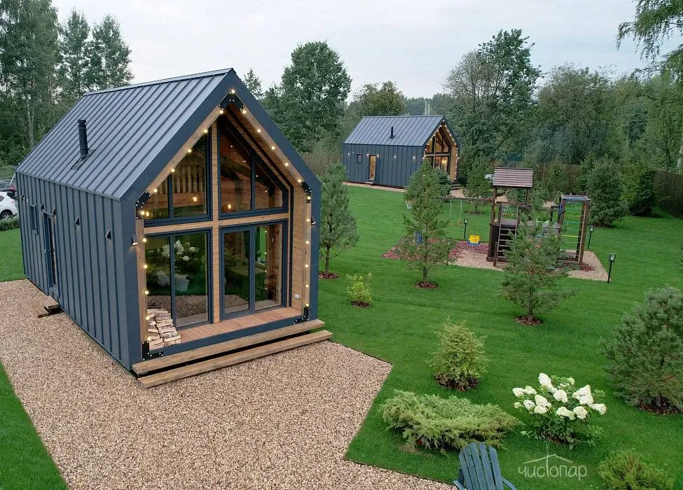 Два уютных домика в стиле барнхаус на берегу реки Истра (Истринское водохранилище) для уединённого отдыха на природе.