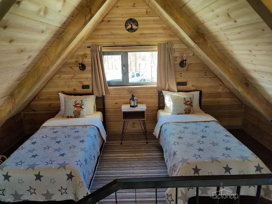 На втором этаже спальня с 2 односпальными кроватями, которые при необходимости можно сдвинуть вместе.
