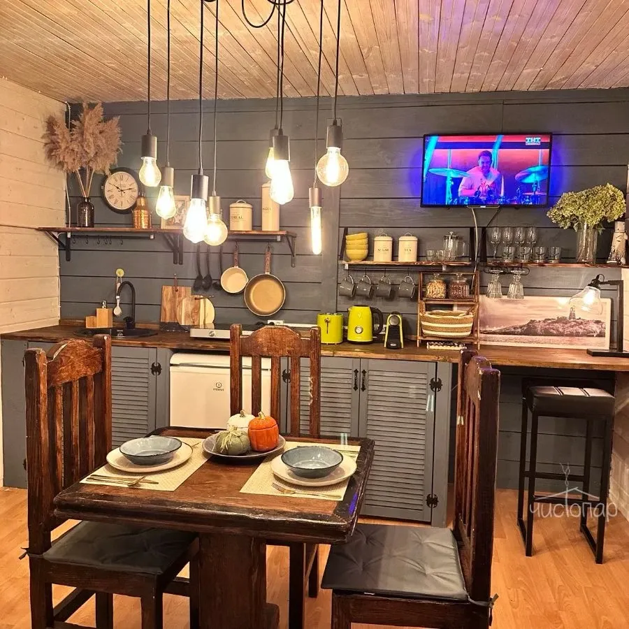 Дача Инн Лес - это два уютных домика для загородного отдыха. Комплекс встречает гостей в престижном коттеджном поселке, что недалеко от Москвы, всего в 33 км от МКАД. У каждого дома своя территория и отдельный вход. Комнаты обустроены дизайнерской мебелью и необходимой бытовой техникой. Атмосферу дополняют различные предметы интерьера и, конечно, настоящий дровяной камин. В каждом коттедже есть финская сауна и огромная терраса, а рядом - оборудованное место для приготовления шашлыка. Телевизор с подпиской на онлайн-кинотеатр и виниловый проигрыватель помогут скрасить вечера. Кроме того, у дома «Прованс» гостей ждет сад, площадка и принадлежности для любимой игры Французской Ривьеры - петанк.