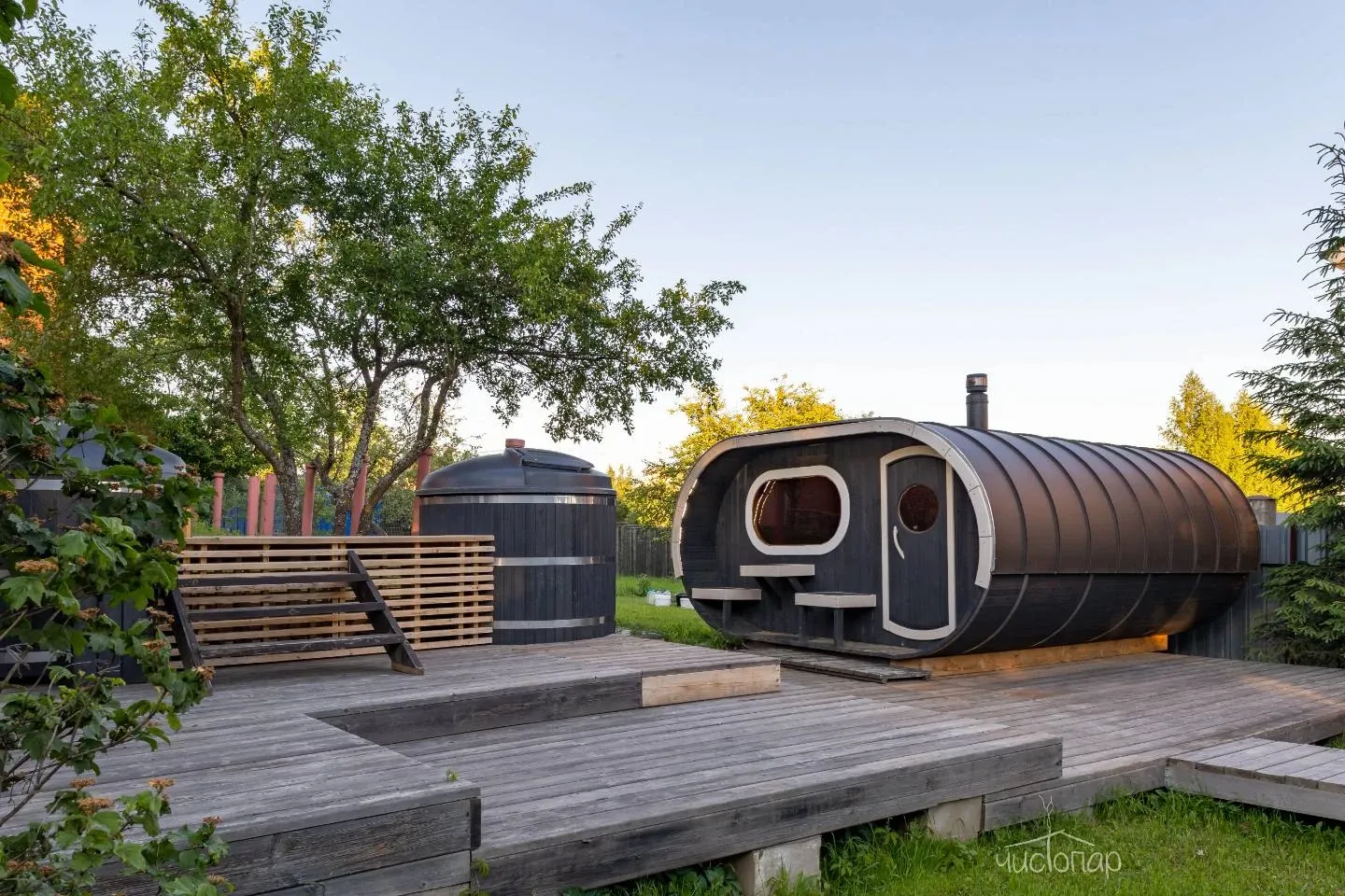 На территории имеется: банный комплекс: баня на дровах, купель с горячей и холодной водой, банный чан.