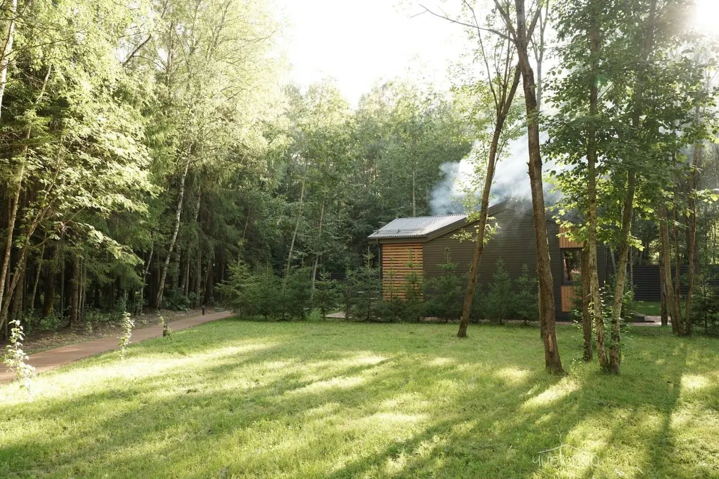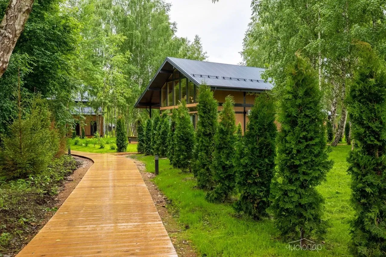 В лесной зоне на территории 6,5 га размещены 12 коттеджей с верандой, пространства для отдыха, две русские бани с кедровыми купелями, рыболовный клуб и ресторан.