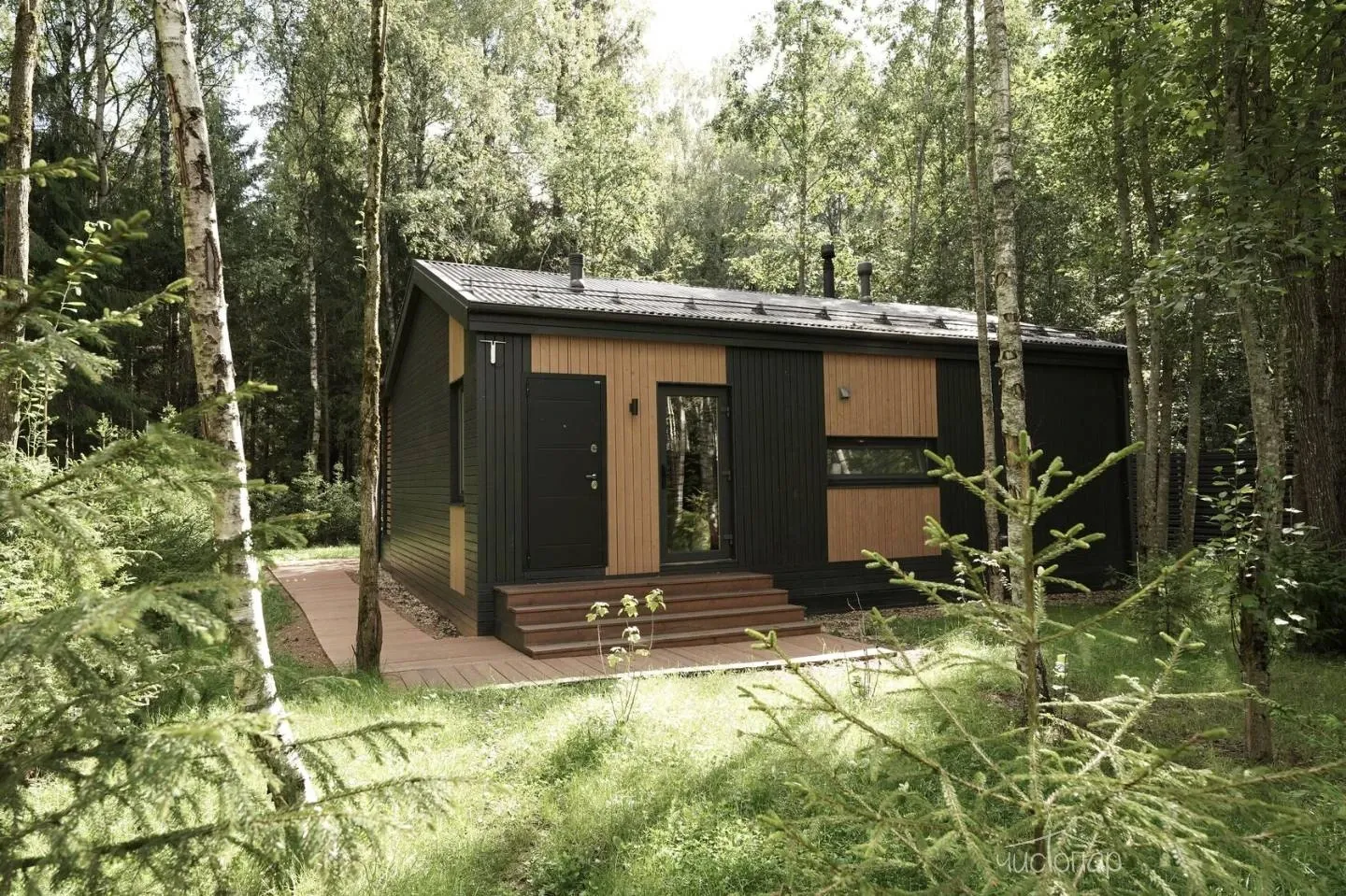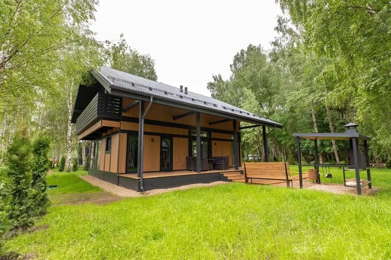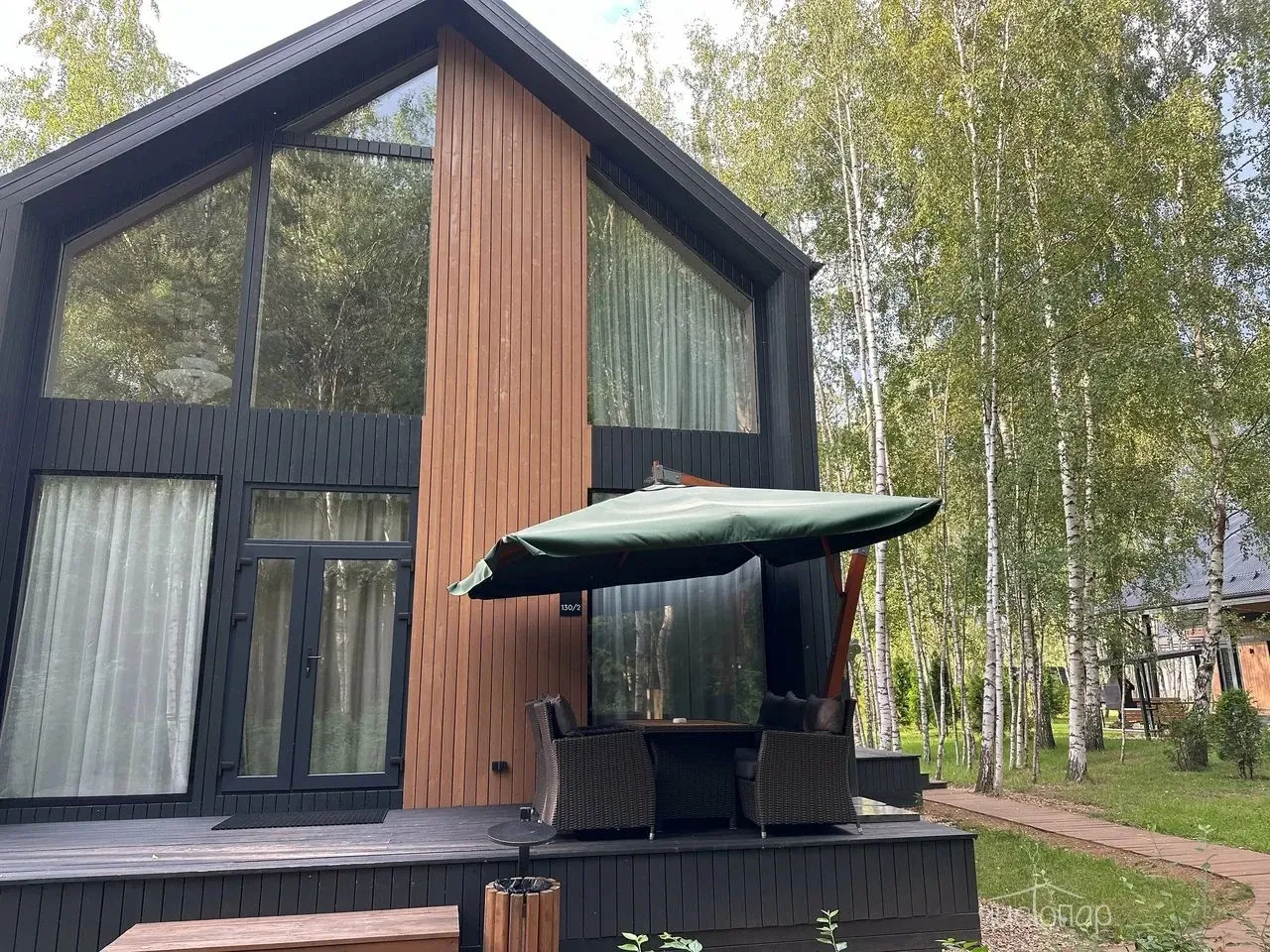 Коттедж 150 кв.м. до 6-ти человекБольшим семейством или с компанией друзей можно комфортно разместиться на двух этажах этого дома. Каркас, облицовка стен и фасада коттеджа выполнена полностью из натуральных материалов. Благодаря огромным панорамным окнам в помещениях много солнечного света, даже в пасмурную погоду в комнатах всегда светло. Из окон открывается прекрасный вид на березовый лес.