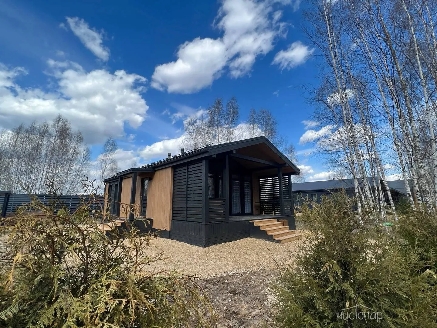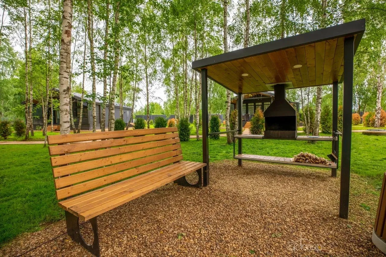 Все коттеджи оборудованы собственной мангальной зоной с углями, очагом и скамейками.