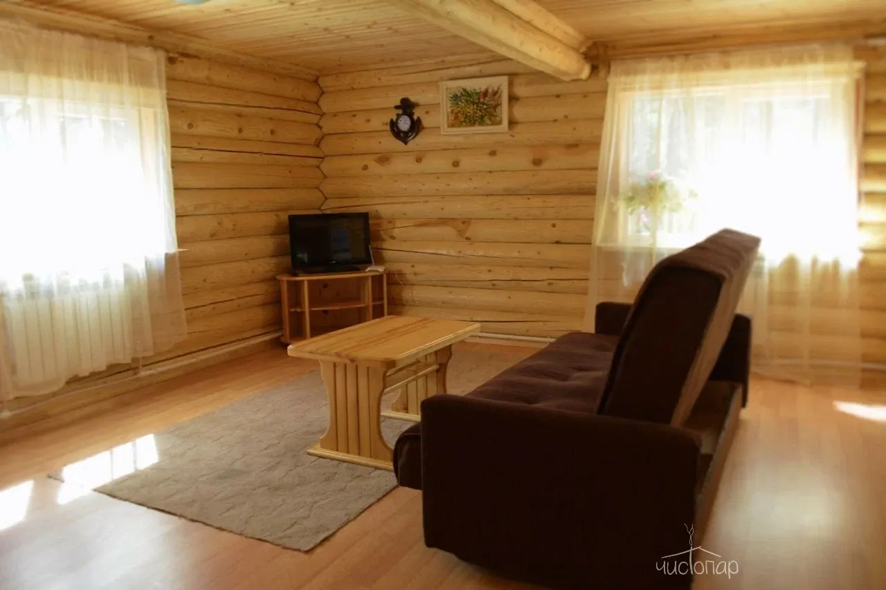 1 этаж: санузел, гостиная, столовая, оборудованная бокс кухня (микроволновая печь, холодильник, чайник, необходимая персона для 8 персон+). Парилка на дровах, джакузи.