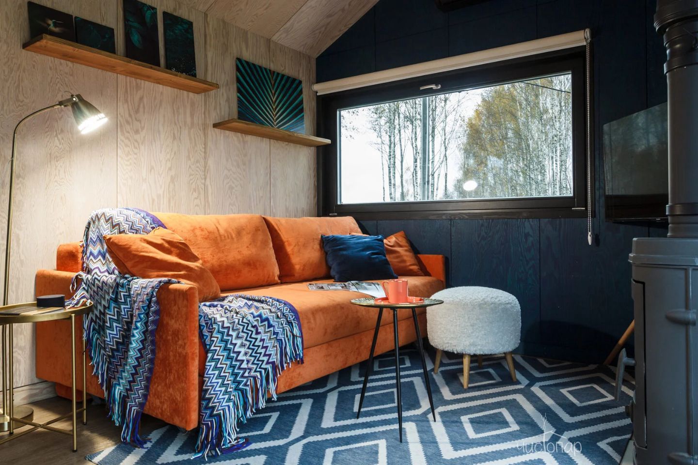 В доме есть отдельная спальня с двуспальной кроватью, а в просторной гостиной находится раскладной диван. По запросу установят детскую люльку.